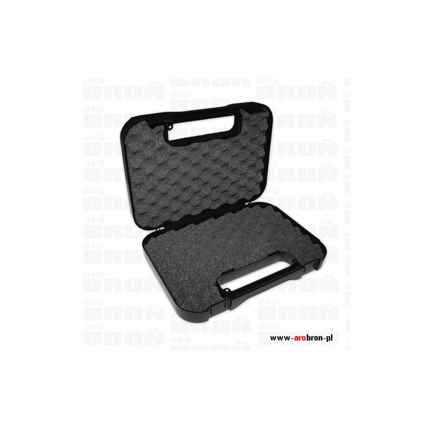 Kufer, walizka do transportu broni krótkiej 24,7x17,7x7,1cm wykonany z wytrzymałego tworzywa, wyłożony grubą gąbką o strukturze tzw. szczęki rekina – tak aby broń podczas transportu nie miała możliwości przesuwania się.