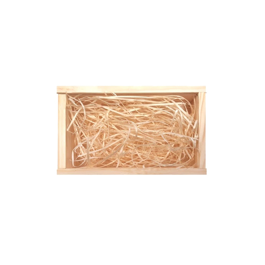 W komplecie wypełnienie wnętrza z wełny drewnianej, co stanowi także dodatkowe zabezpieczenie przed uszkodzeniem zawartości.