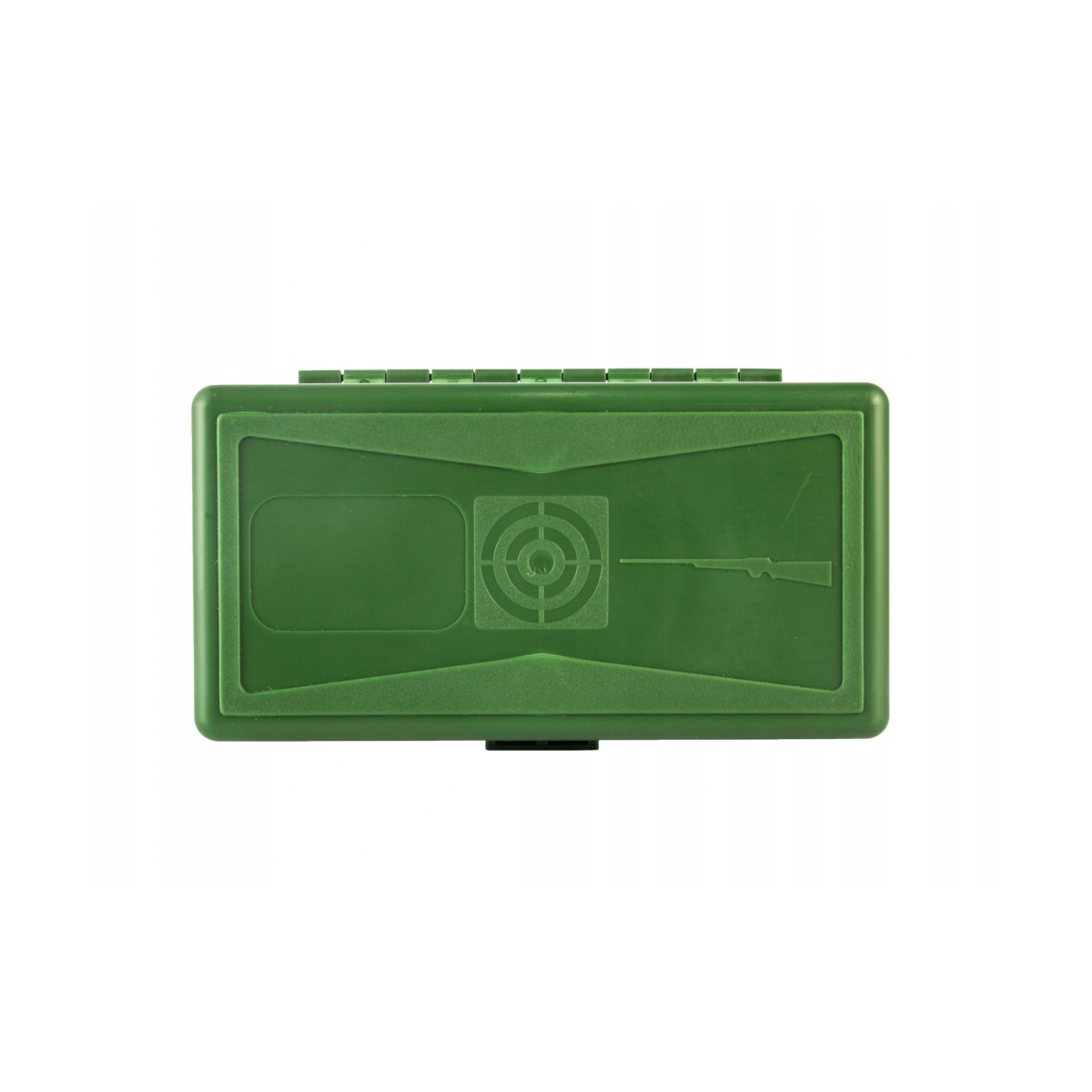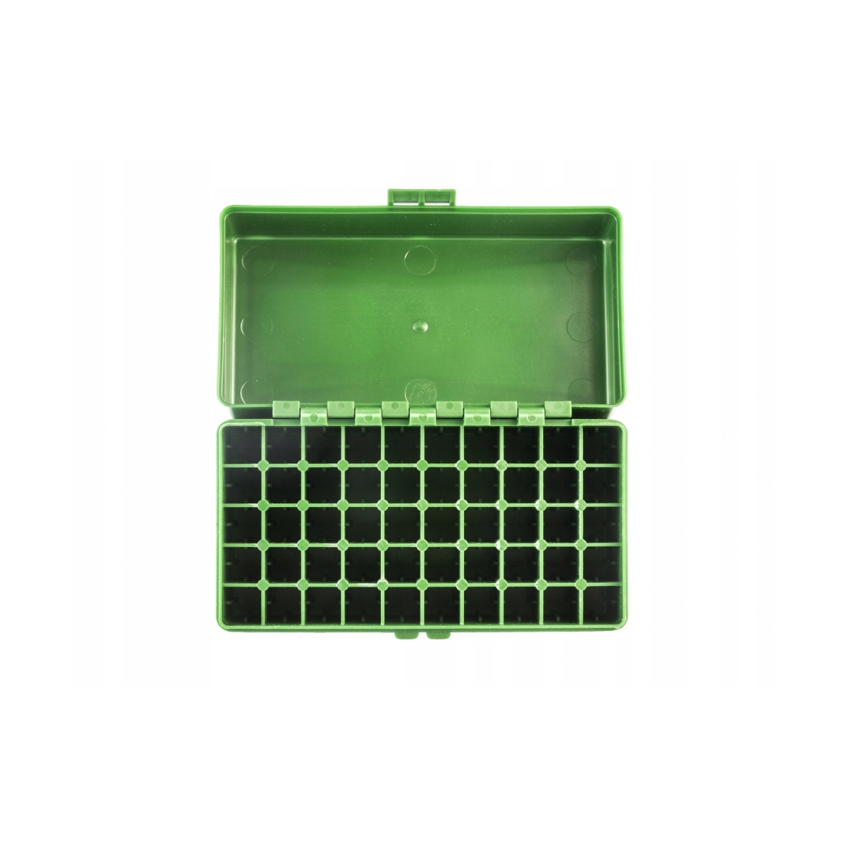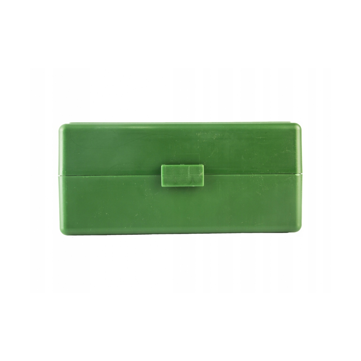 Pudełko na 50 szt naboi pistoletowych kalibru 223rem. Wykonane z twardego tworzywa sztucznego w kolorze zielonym.