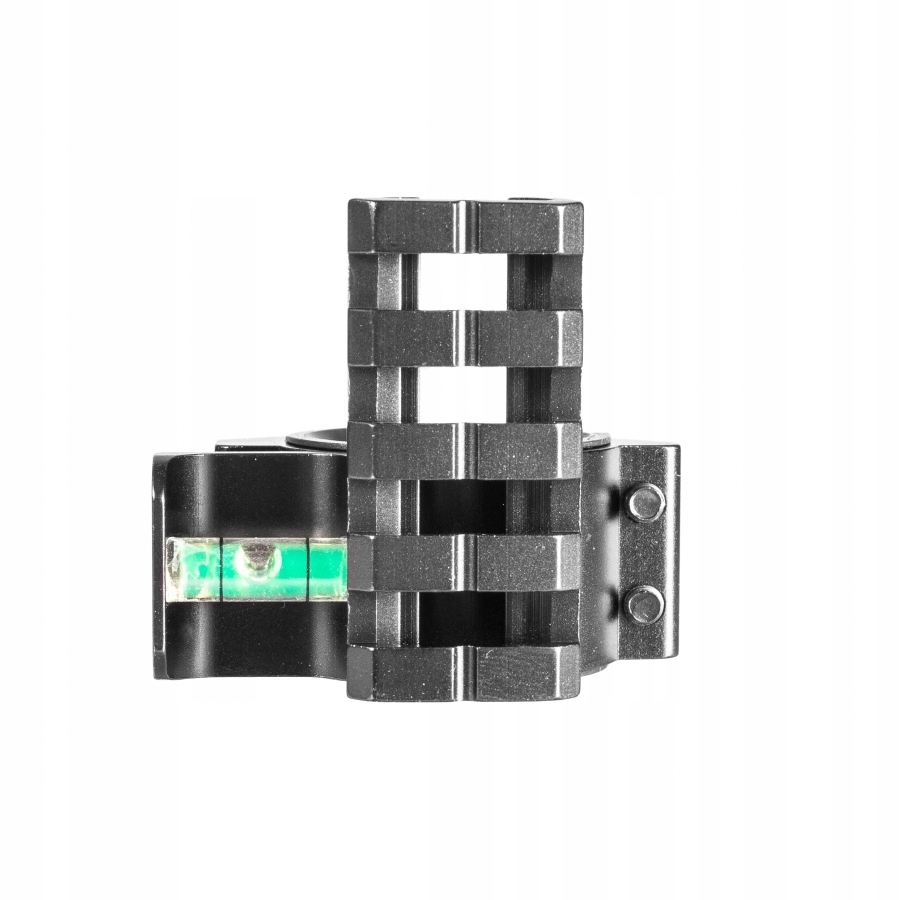 Poziomiczka z szyną weaver 1"/30mm - wykonana z wytrzymałego anodowanego aluminium, odpornego na korozję i zarysowania. Dzięki wkładce dystansowej poziomica może być montowana na lunetach o tubusie calowym i 30 mm. W górnej części poziomicy znajduje się szyna w standardzie Weaver, umożliwiająca mocowanie dodatkowych akcesoriów. Jest to przydatny dodatek do broni palnej i pneumatycznej, który ułatwia ustawienie broni w idealnej pozycji oraz ukształtowanie prawidłowej postawy strzeleckiej.