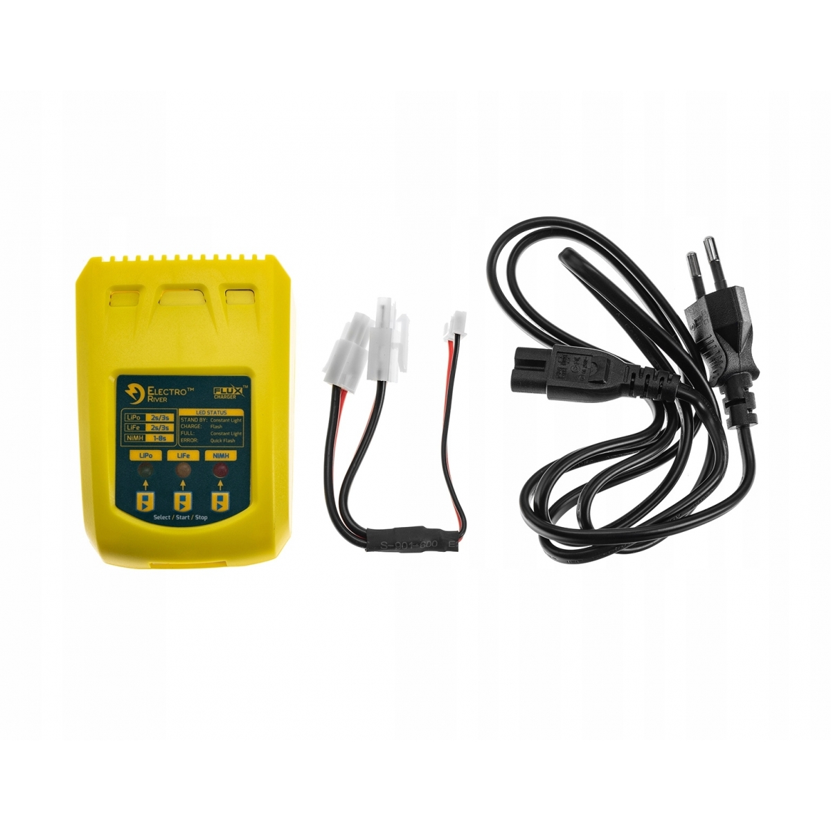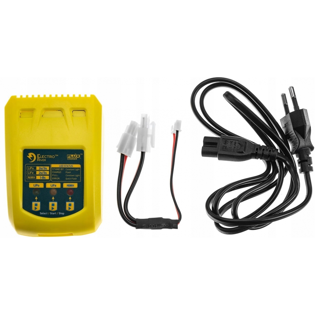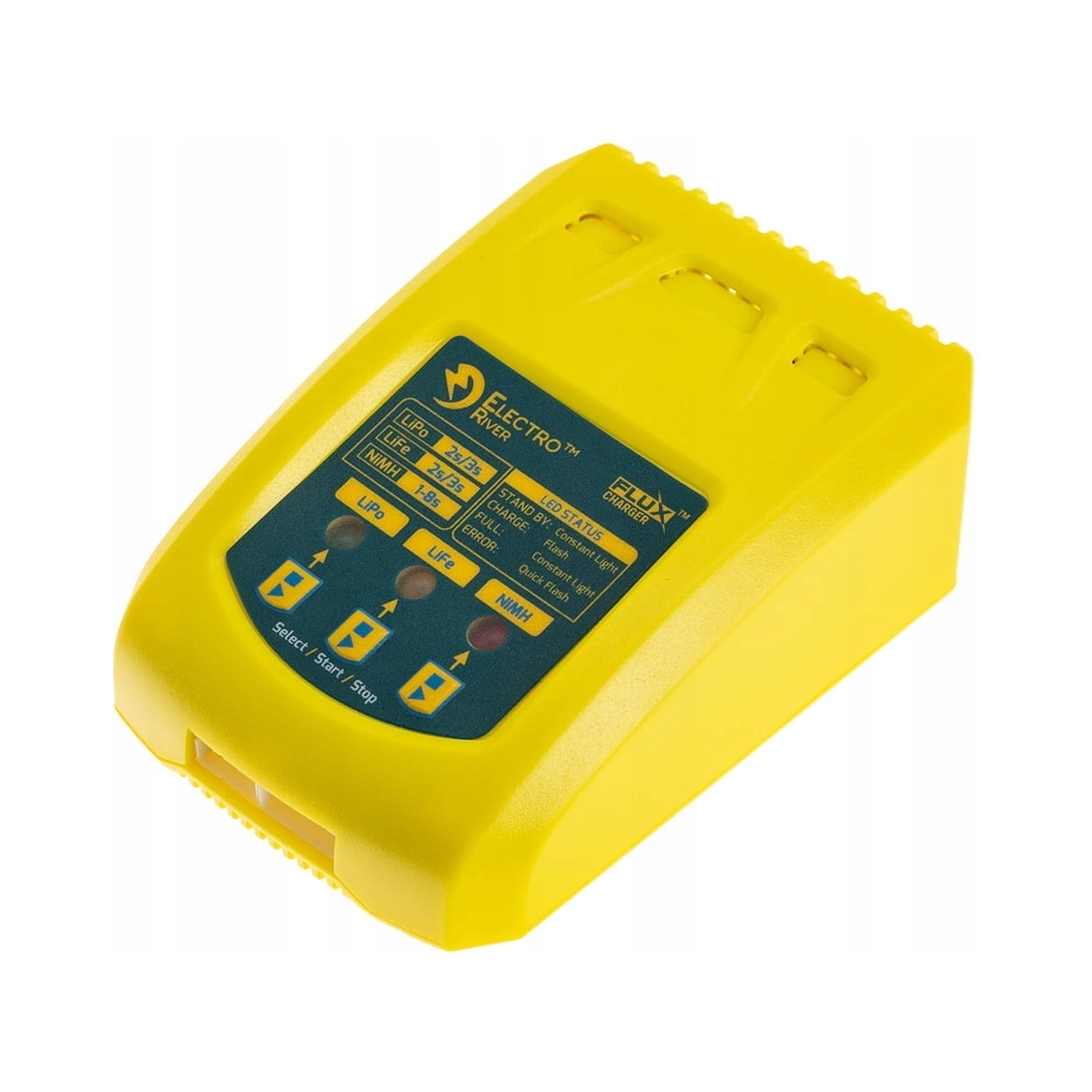 Uniwersalna Ładowarka Flux Charger - dostosowana do większości dostępnych na rynku pakietów akumulatorów, w tym pakietów Li-Po, Li-Fe oraz NiMH. Ładowarka została wyposażona w balanser oraz czytelny system komunikatów, oparty na kolorowych diodach LED.