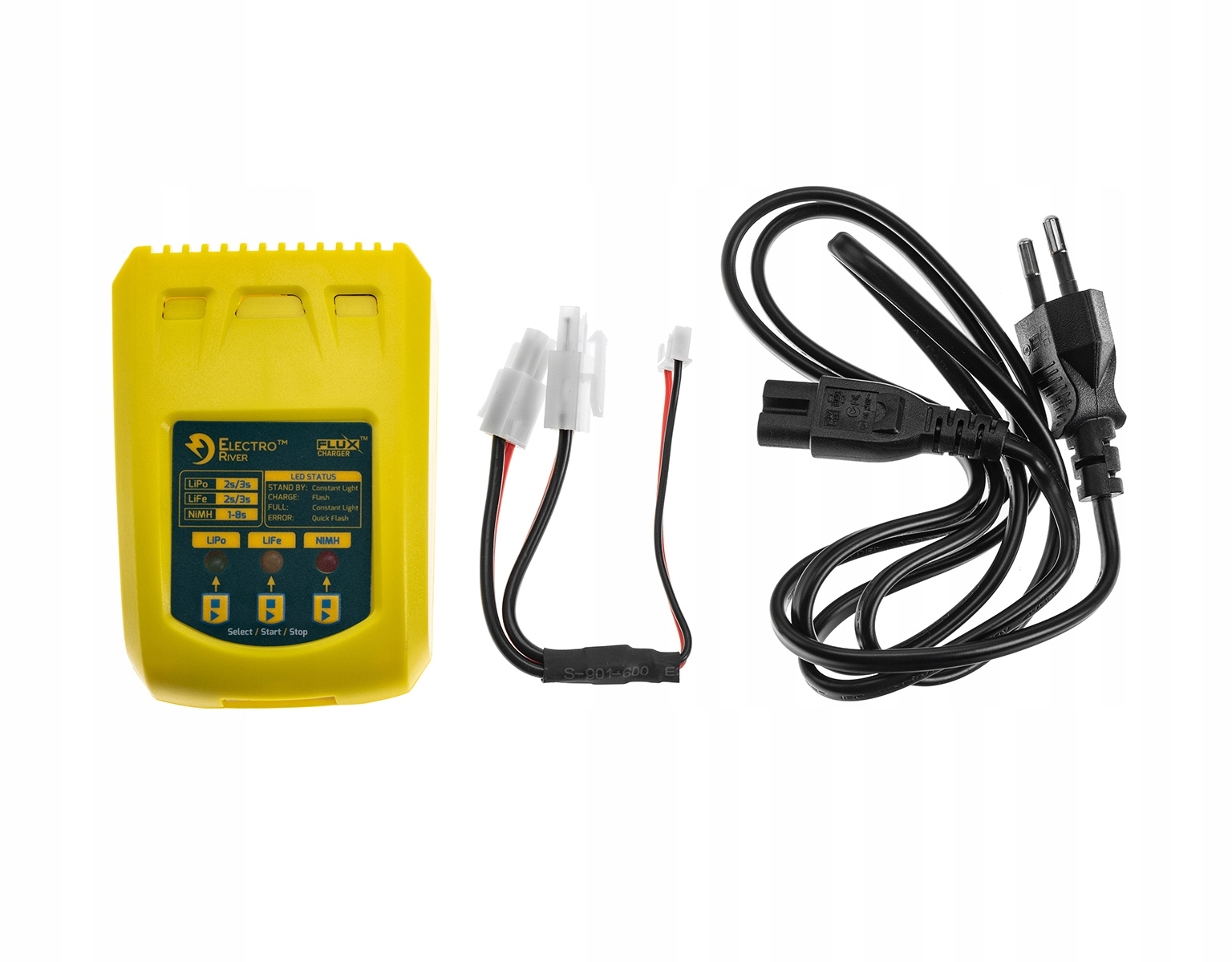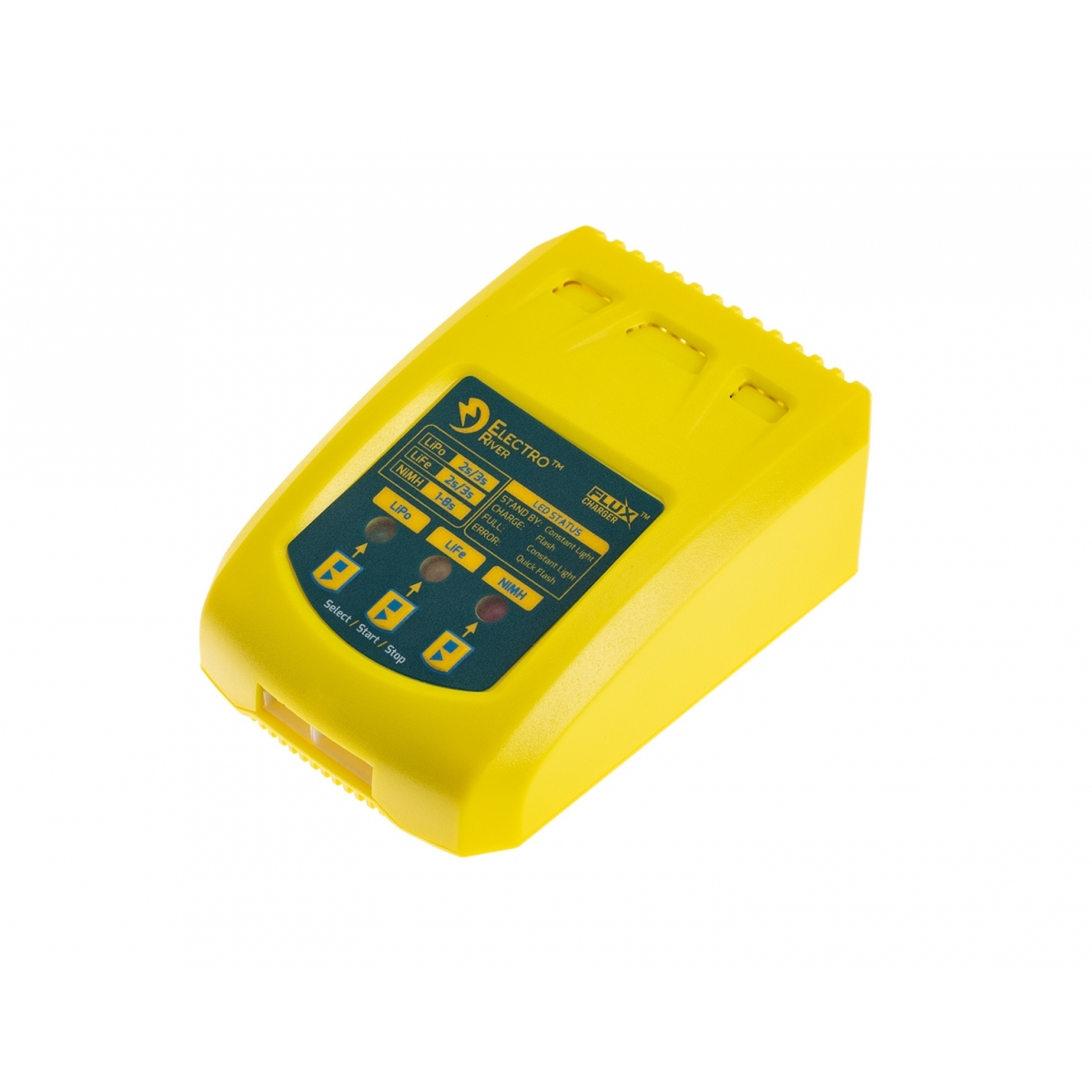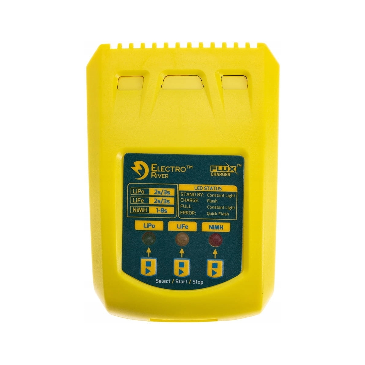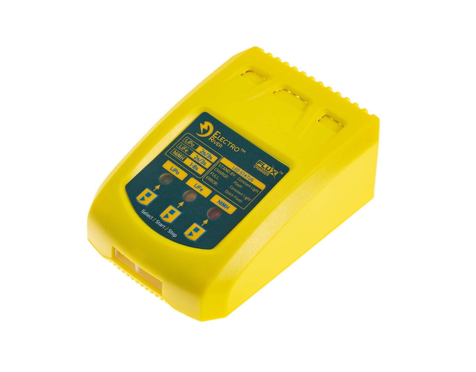 Uniwersalna Ładowarka Flux Charger - dostosowana do większości dostępnych na rynku pakietów akumulatorów, w tym pakietów Li-Po, Li-Fe oraz NiMH. Ładowarka została wyposażona w balanser oraz czytelny system komunikatów, oparty na kolorowych diodach LED.