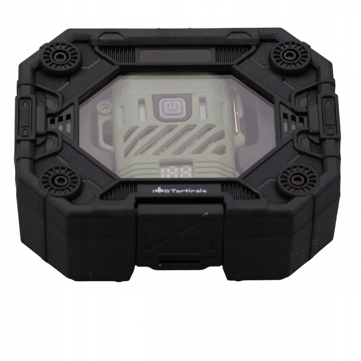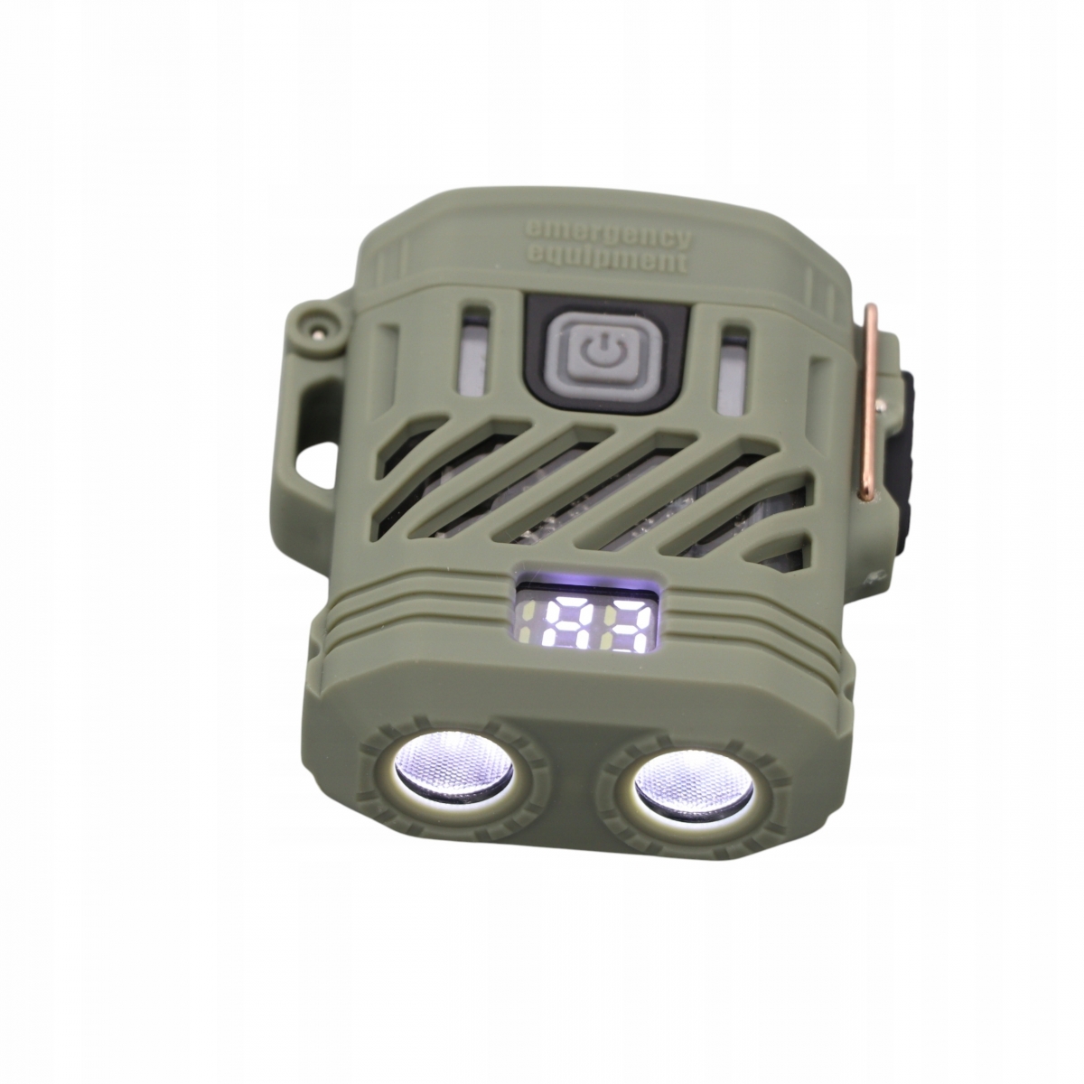 - Podczas świecenia latarki – wyświetlacz pokazuje dokładny poziom naładowania baterii (0–100%).