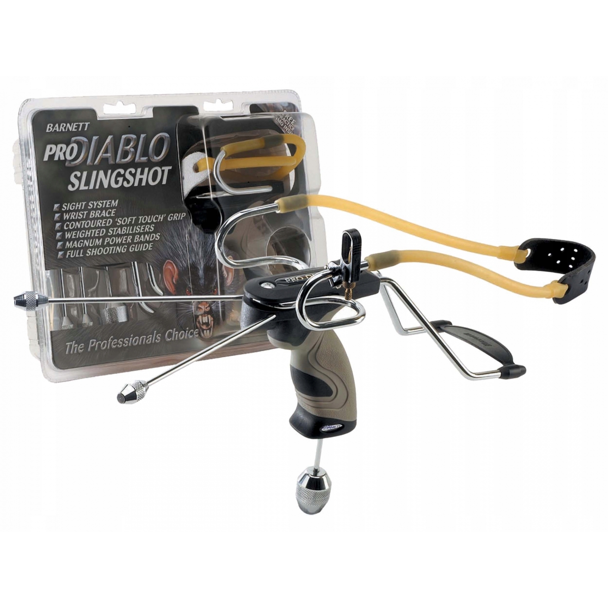 Proca Barnett Diablo II - to bardzo mocna, profesjonalna proca z systemem "Soft Touch" będącym innowacyjnym projektem rękojeści, która miękko i wygodnie leży w ręce, sprawiając że można z niej strzelać godzinami. Proca posiada celownik oraz 3 stabilizatory.