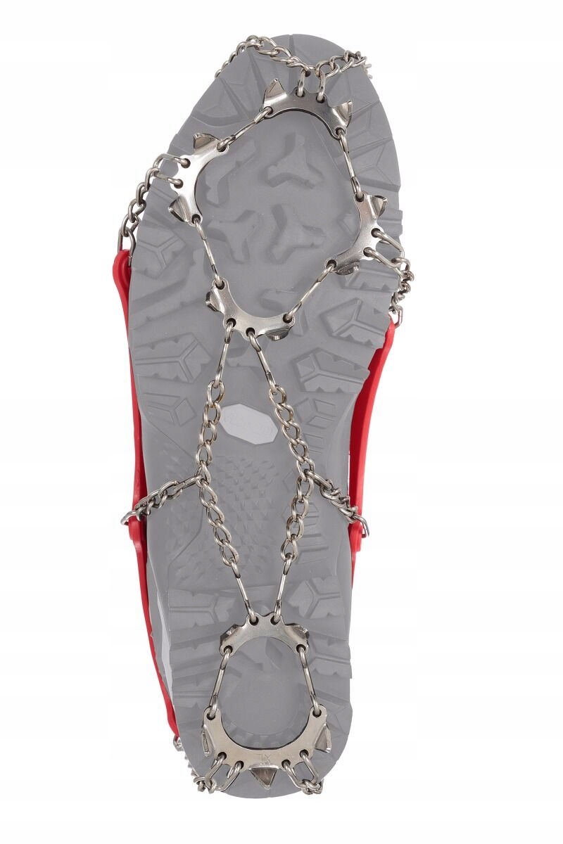Dolna część raczków wykonana jest ze stali nierdzewnej a na płytkach równomiernie rozmieszczono 13 zębów, które wbijają się np. w zmrożone podłoże zapewniając stabilizację podczas poruszania się. Poszczególne elementy połączono ruchomymi łańcuszkami, które gwarantują elastyczność. Dzięki temu raczki świetnie współpracują z prawie każdym modelem obuwia trekkingowego, również z butami o miękkiej podeszwie.