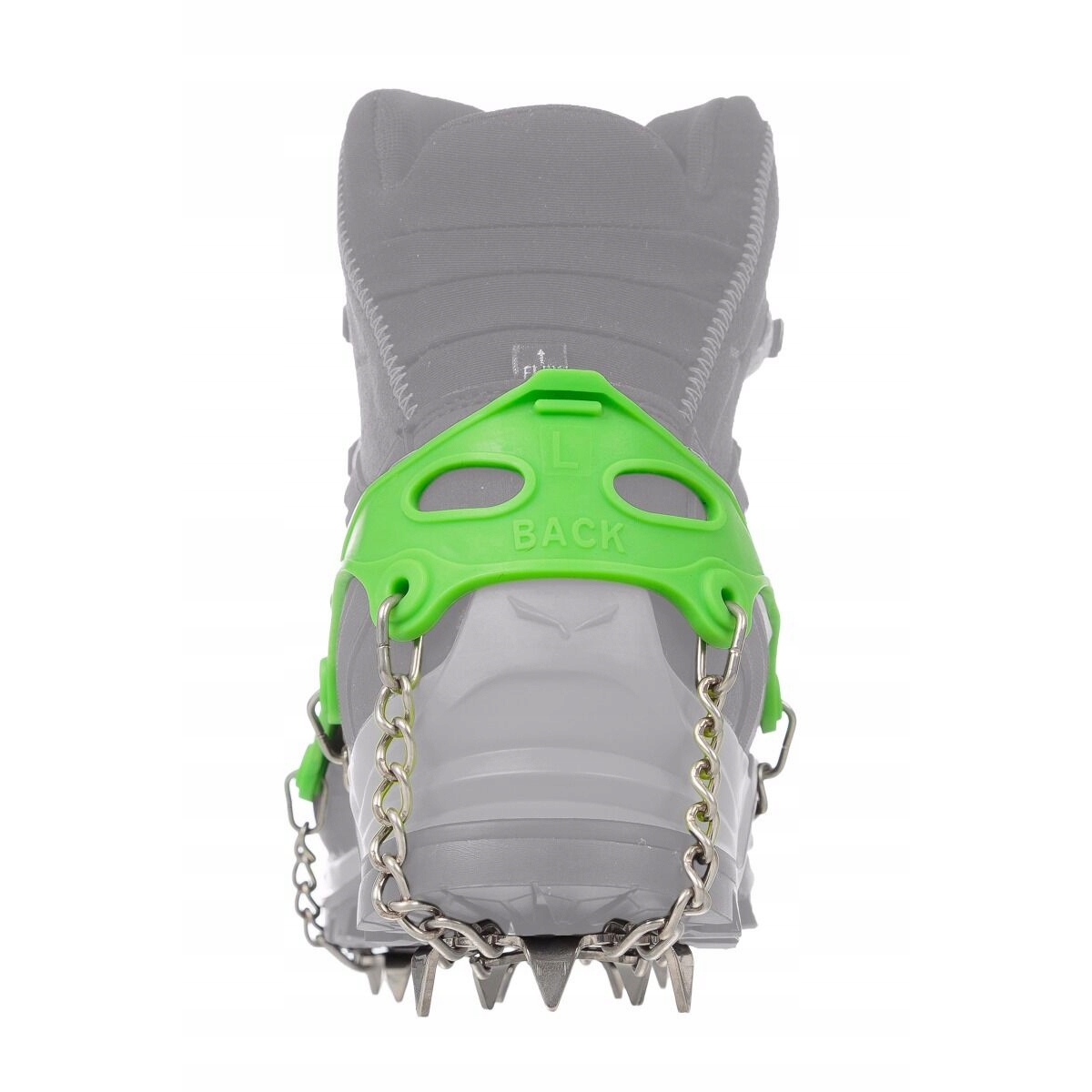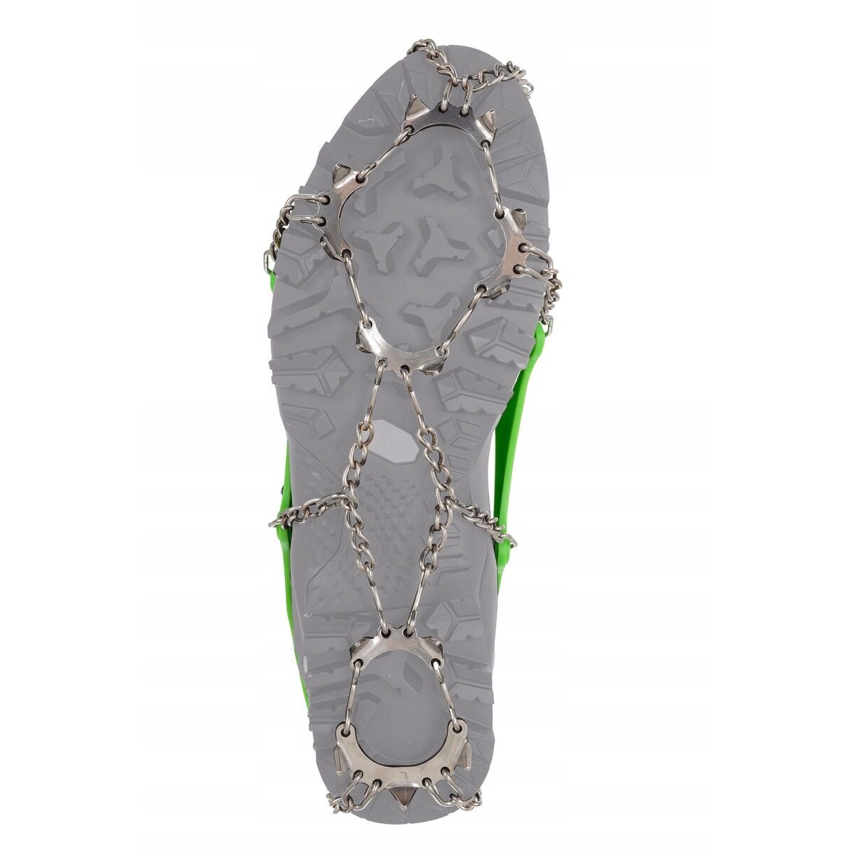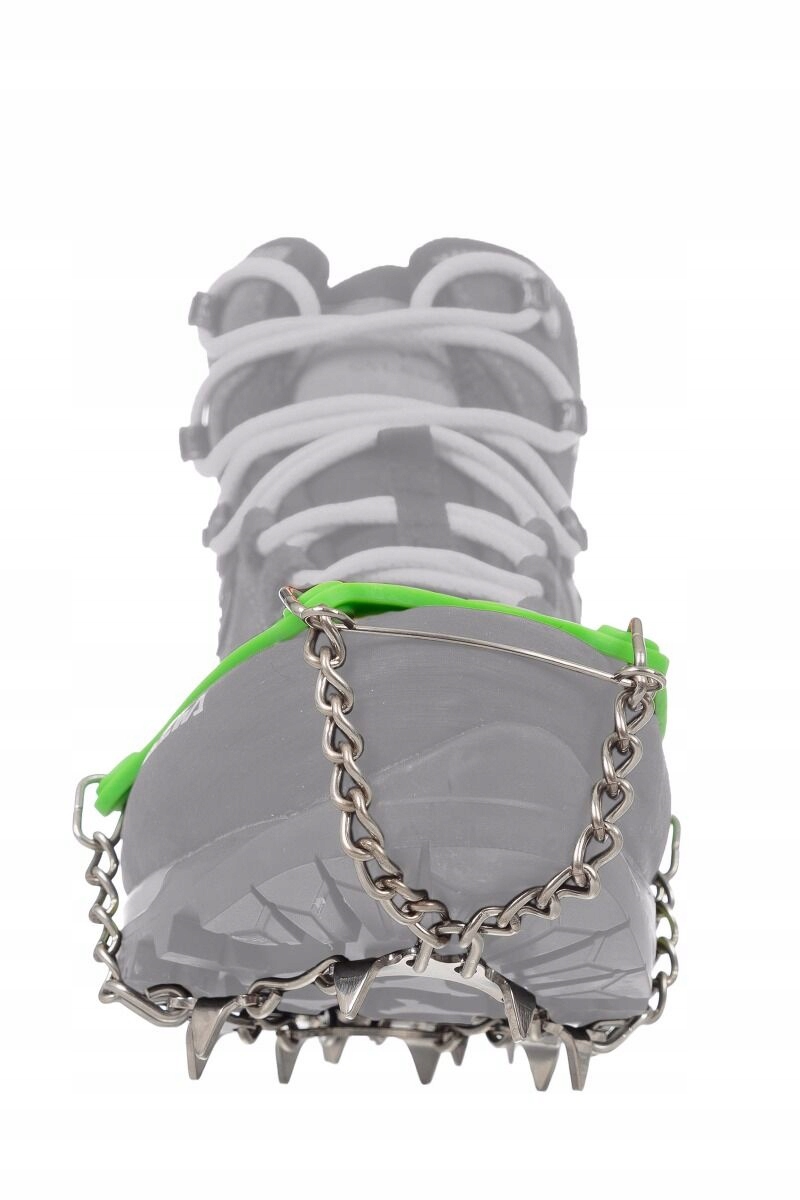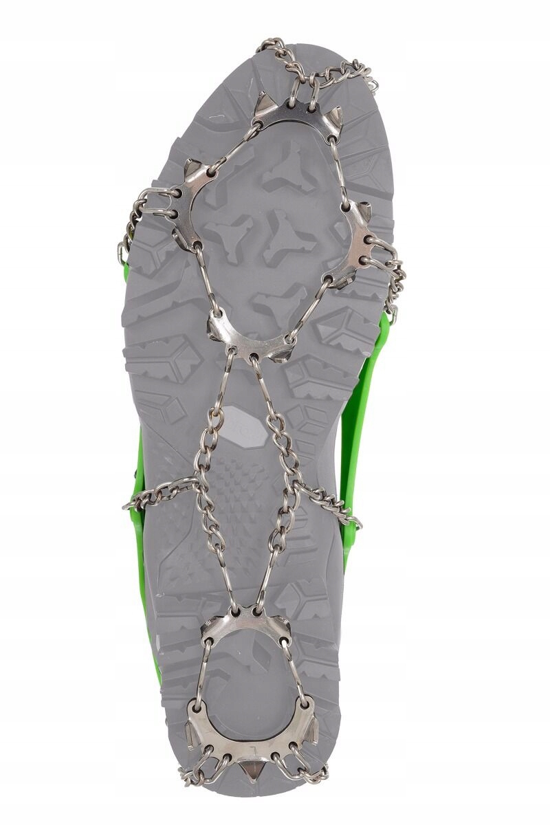 Dolna część raczków wykonana jest ze stali nierdzewnej a na płytkach równomiernie rozmieszczono 13 zębów, które wbijają się np. w zmrożone podłoże zapewniając stabilizację podczas poruszania się. Poszczególne elementy połączono ruchomymi łańcuszkami, które gwarantują elastyczność. Dzięki temu raczki świetnie współpracują z prawie każdym modelem obuwia trekkingowego, również z butami o miękkiej podeszwie.