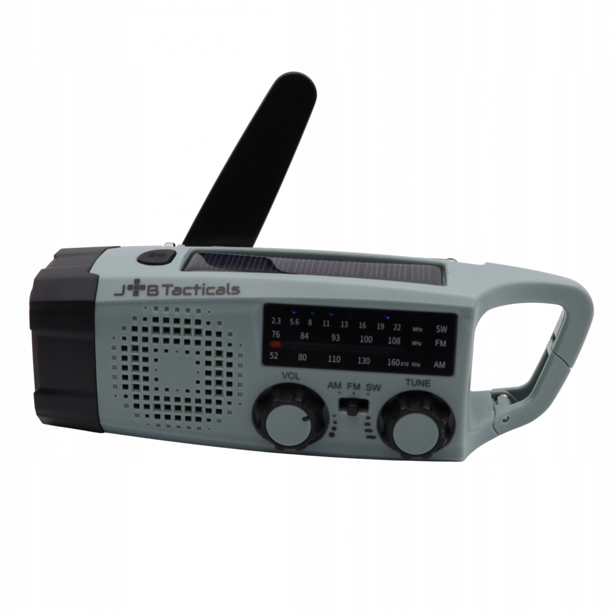 Radio awaryjne JB Tacticals to kompletna stacja awaryjna. Poza funkcją radia posiada również latarkę, sygnał SOS oraz pełni funkcję powerbanka.