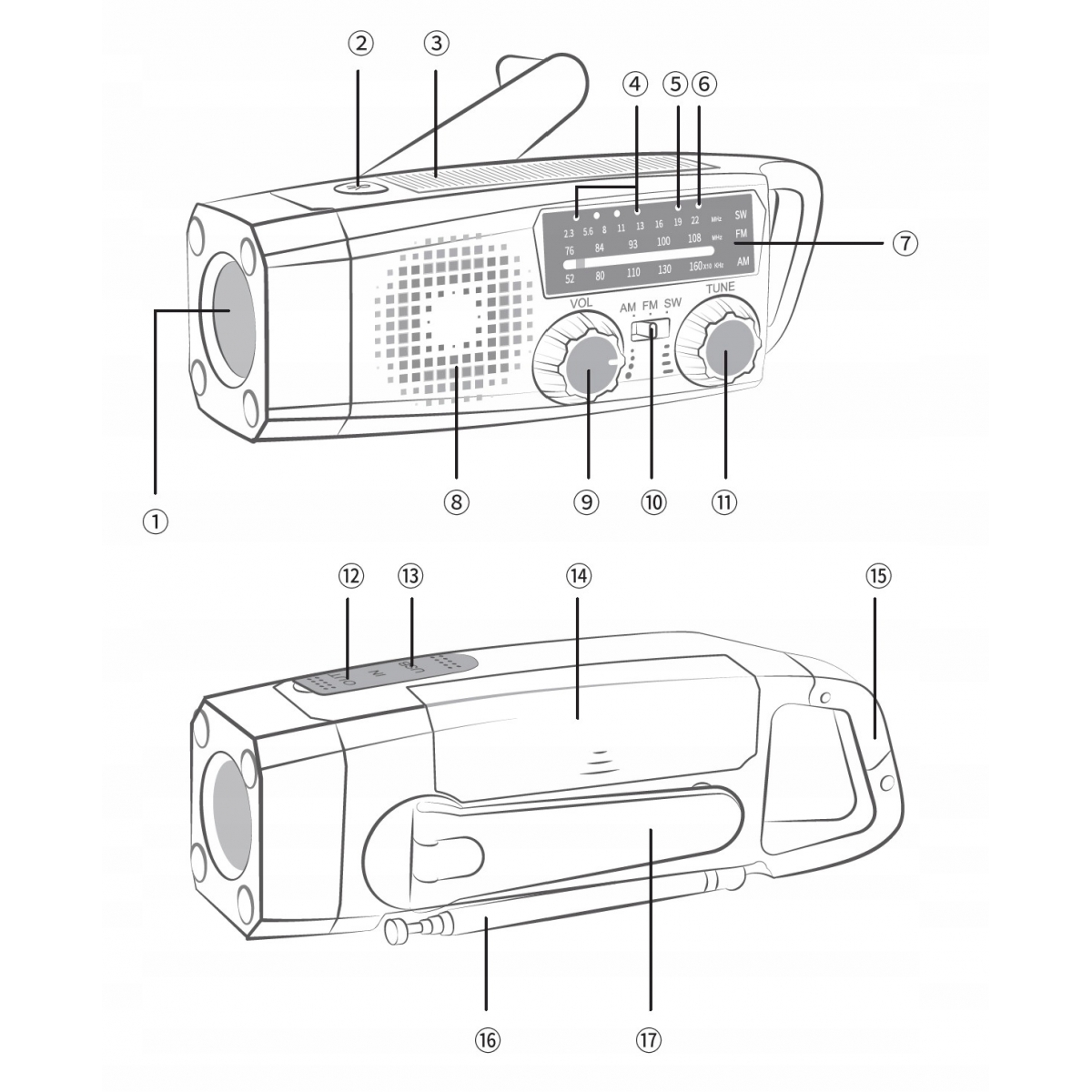 ⑩ Przełącznik FM/AM/SW
