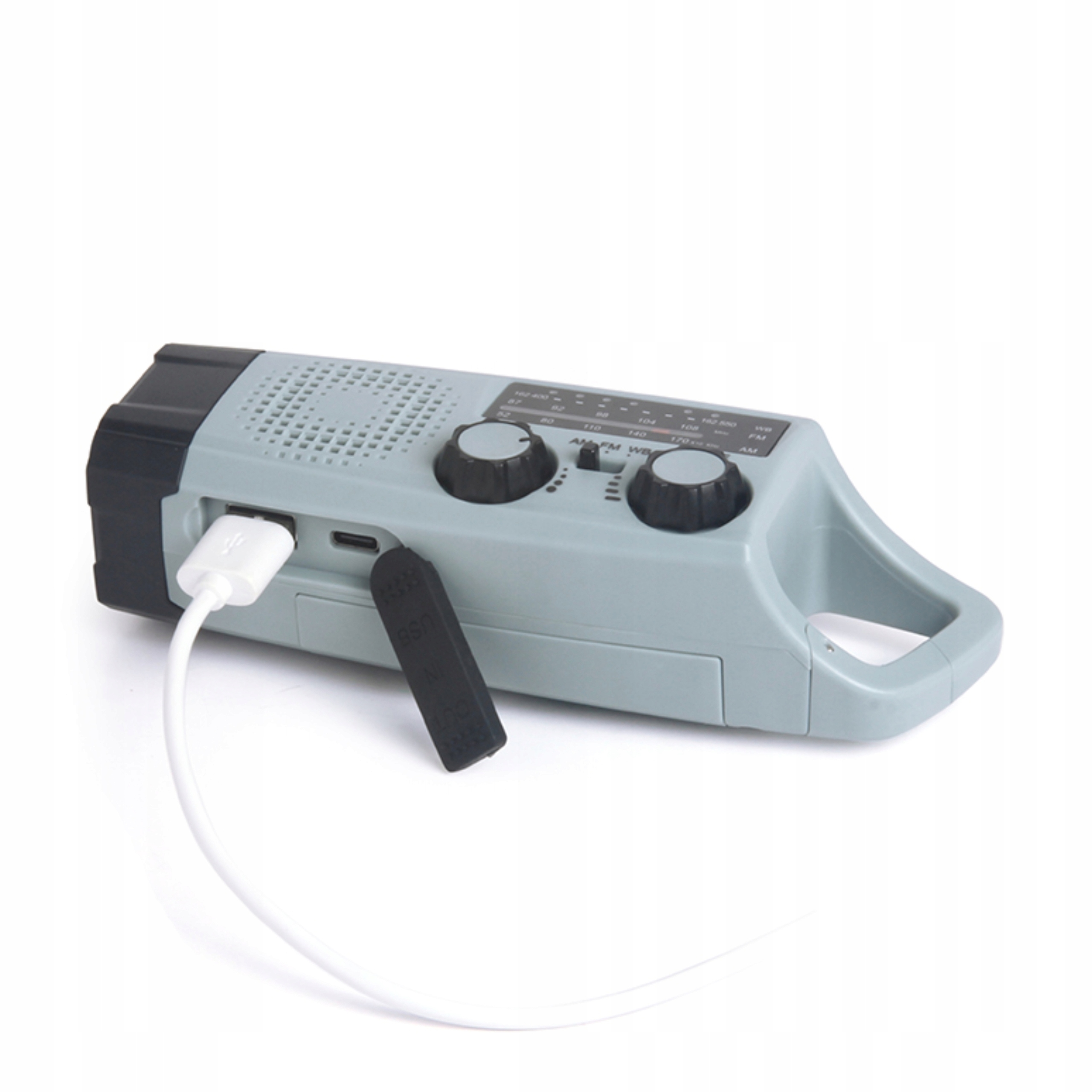 ✅ Trzy źródła zasilania: USB-C, ładowanie solarne, korbka (dynamo)