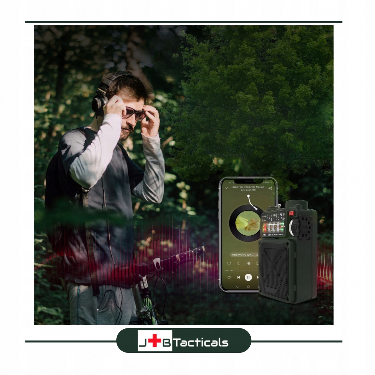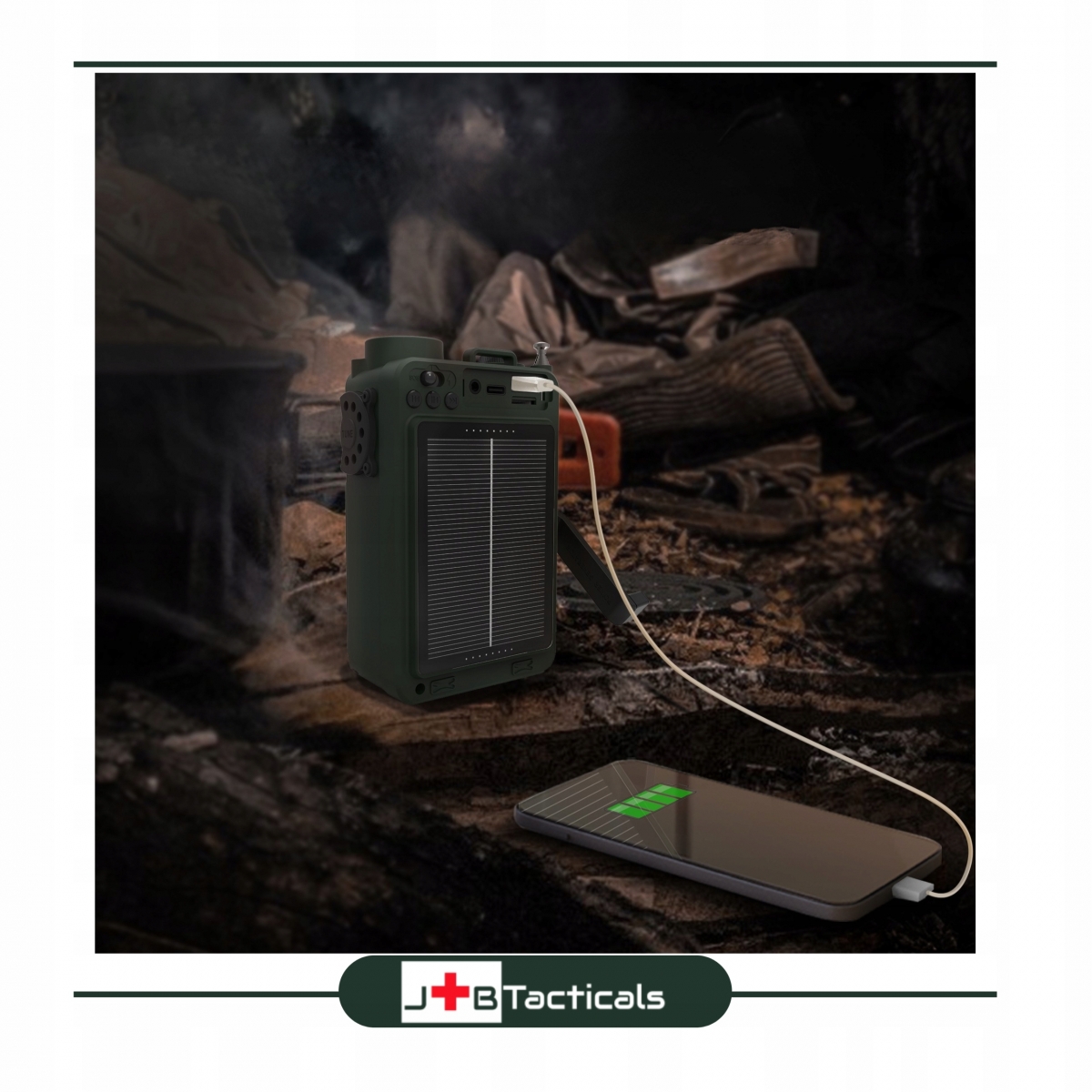 Radio awaryjne JB Tacticals to kompletna stacja awaryjna. Poza funkcją radia posiada również latarkę o mocy 120 lumenów, sygnał SOS oraz pełni funkcję powerbanka.