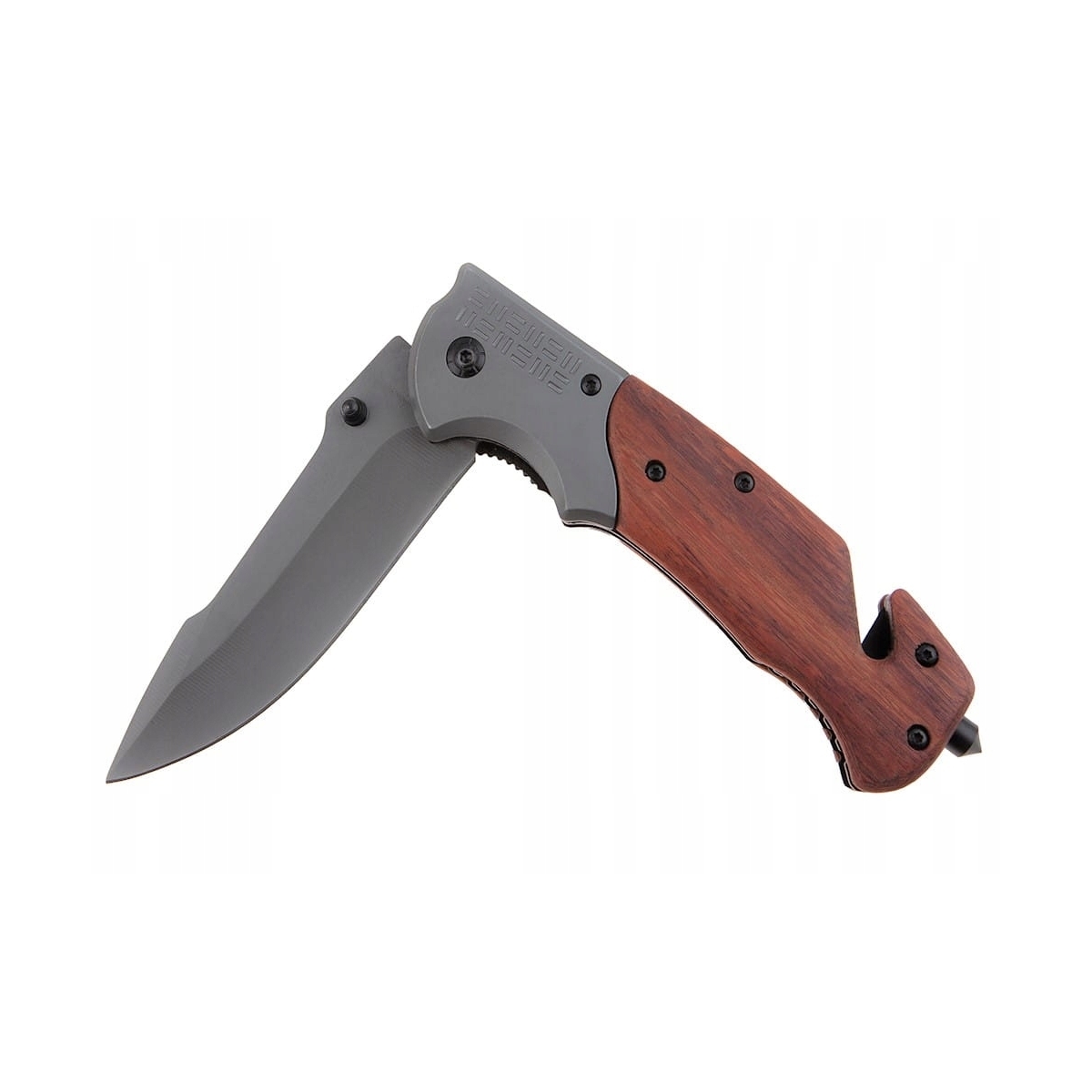 - Na końcu rękojeści znajduje się zbijak do szyb oraz nóż do cięcia pasów.