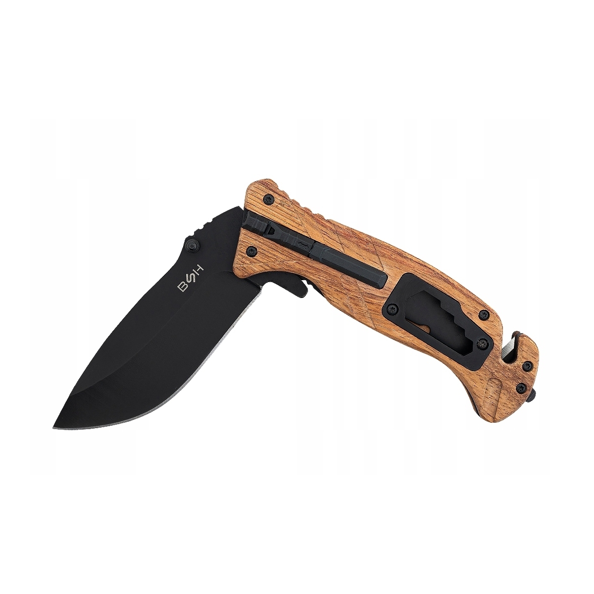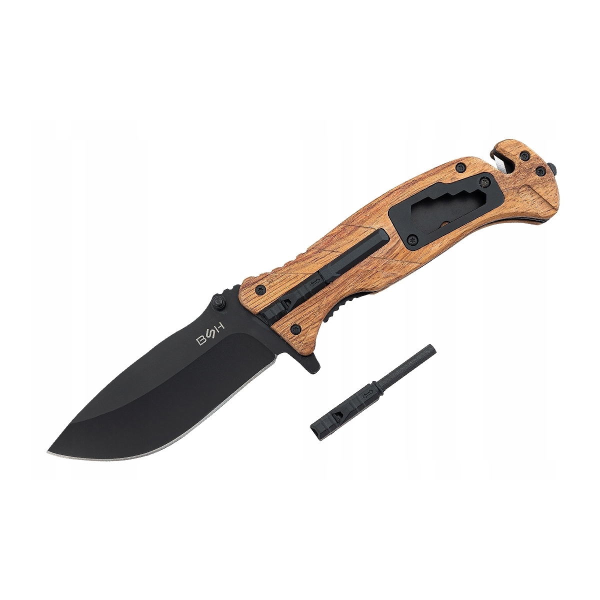 Nóż sprężynowy ratowniczy 6 w 1 BSH ADVENTURE krzesiwo gwizdek klucze