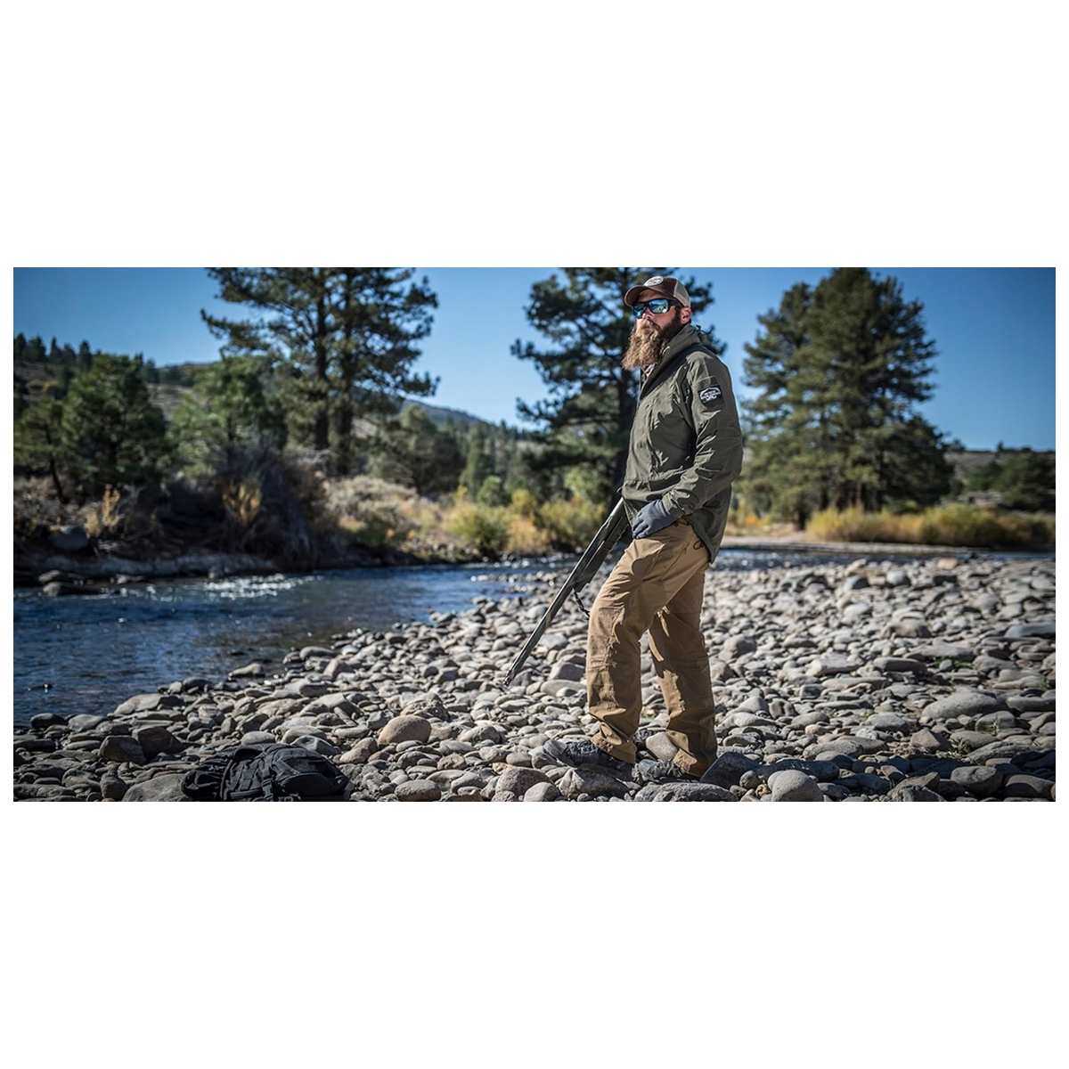 Zastosowanie mieszanki wytrzymałych materiałów - całość stanowi elastyczną i lekką konstrukcję, a przy tym nieślizgającą się pod wpływem wilgoci, a także niesztywniejącą w niskich temperaturach. Izolację termiczną stanowi tkanina 3M Thinsulate. Mankiet zapinany jest na rzep (velcro).