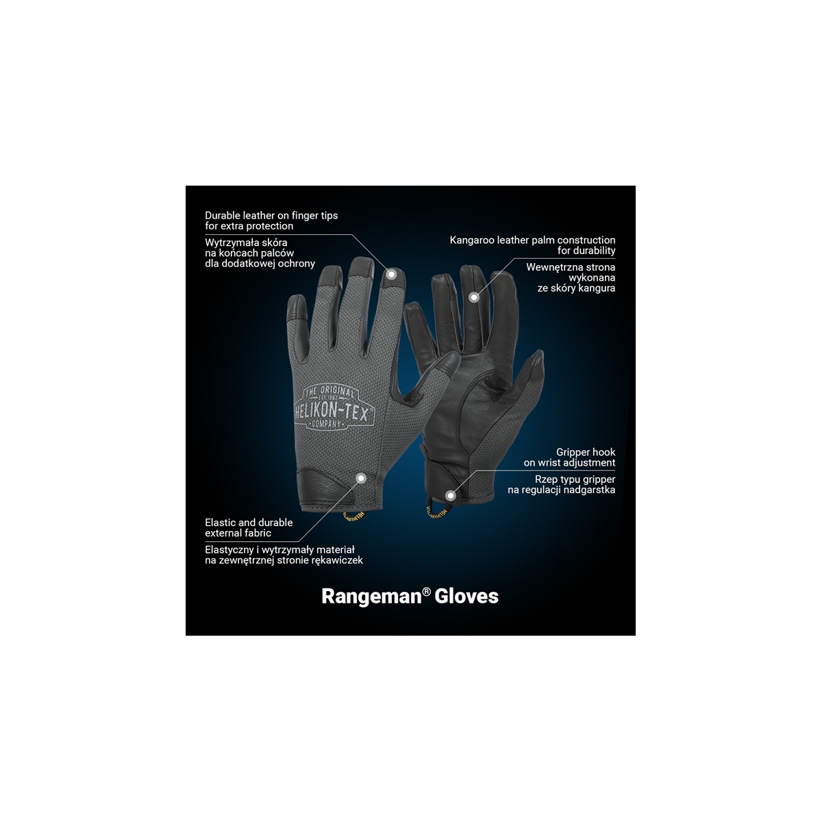 Rękawice HELIKON RANGEMAN - lekkie rękawice przeznaczone do precyzyjnego operowania bronią na strzelnicy. Zaprojektowane przy współpracy z ekspertami w strzelectwie i taktyce, by sprostać nawet najbardziej wymagającym zadaniom. Zastosowane materiały nie krępują ruchów i zapewniają bardzo dobre czucie broni.