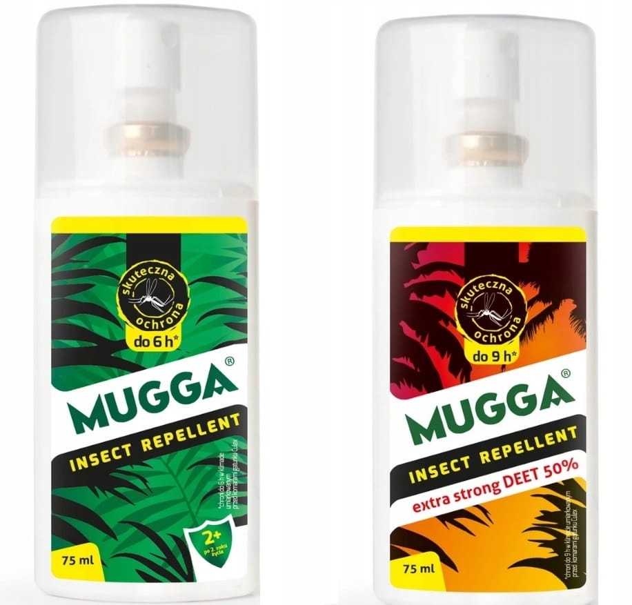 ✔️ MUGGA Strong DEET 50% Spray - to najwyższej jakości preparat odstraszający owady w formie sprayu do bezpośredniej aplikacji na odkryte części ciała. Repelent o najwyższym stężeniu substancji odstraszającej DEET. Sworzony z myślą o ochronie osób wyjeżdżających do stref zagrożenia chorobami tropikalnymi. Preparat posiada przyjemny eukaliptusowy zapach oraz wysoki czas działania, nie jest tłusty i łatwo się aplikuje.