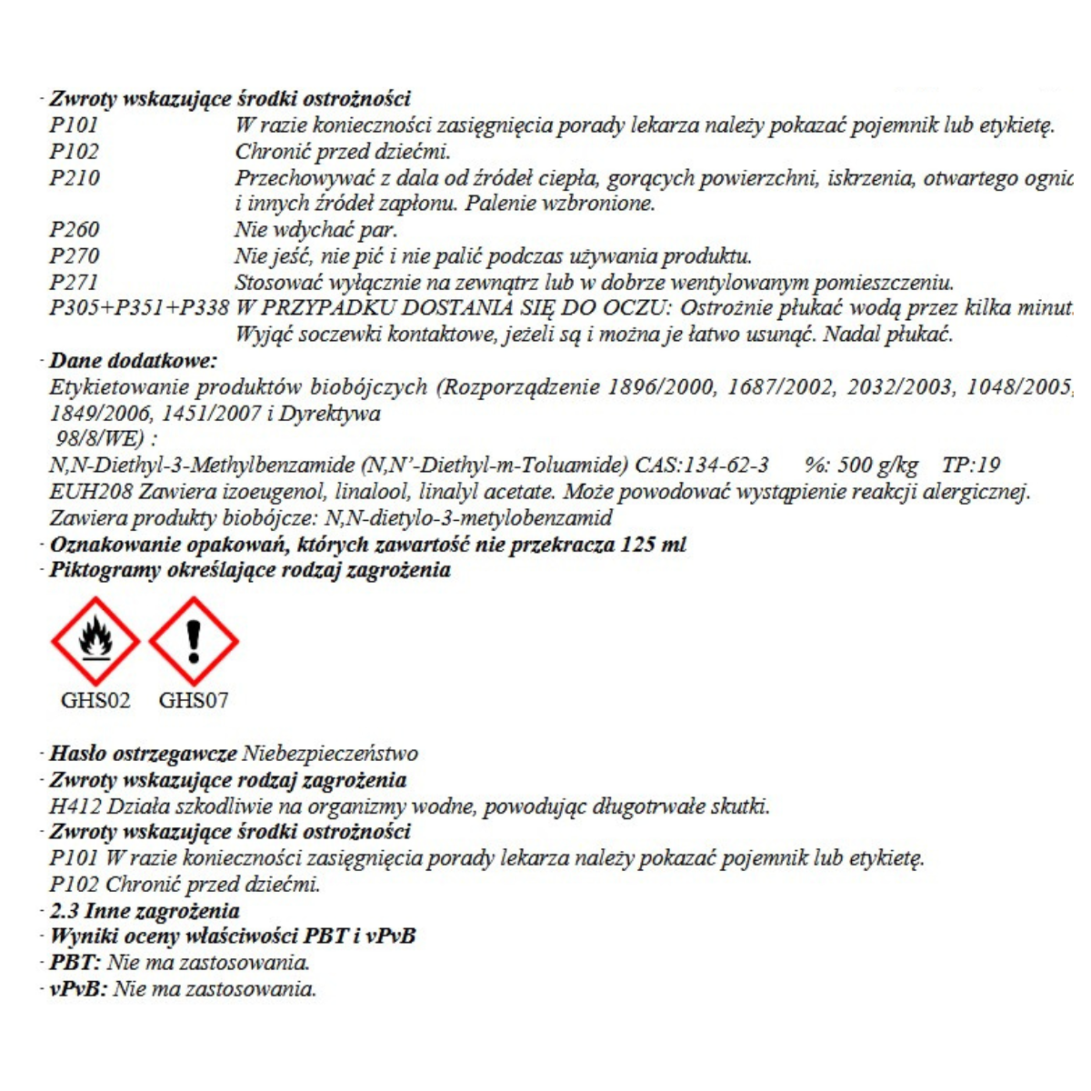- DEET 9,4% N,N-Diethyl-meta-toluamide 500 g/L