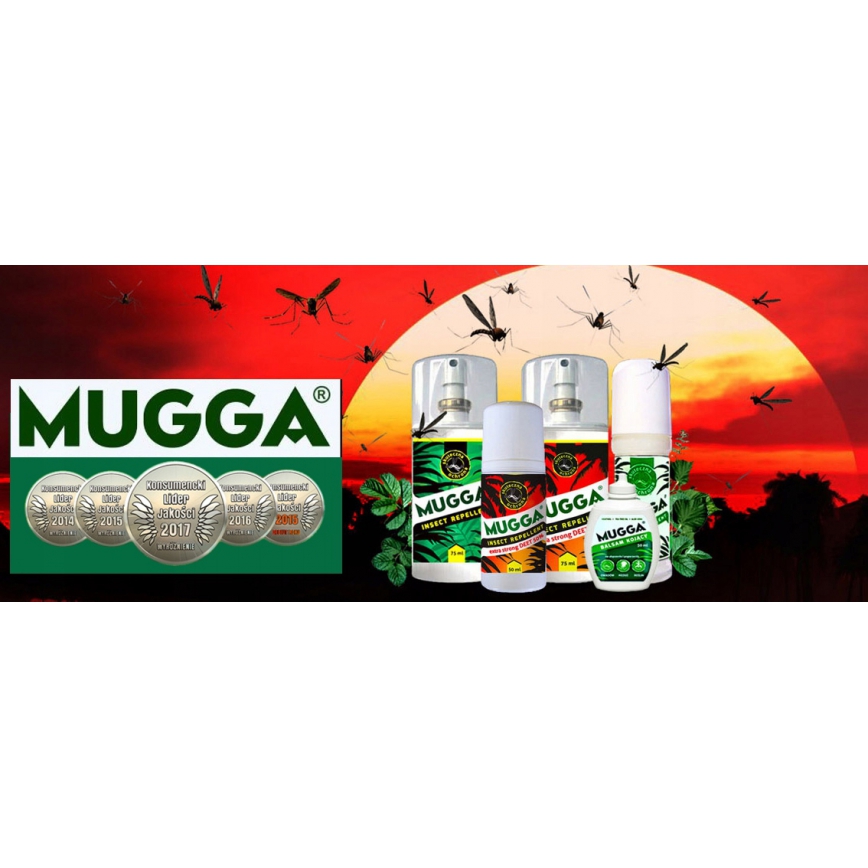 Mugga DEET idealnie sprawdza się zarówno w klimacie tropikalnym oraz europejskim i jest przeznaczona przede wszystkim dla chcących uchronić się przed różnego rodzaju groźnymi dla zdrowia insektami m.in.: