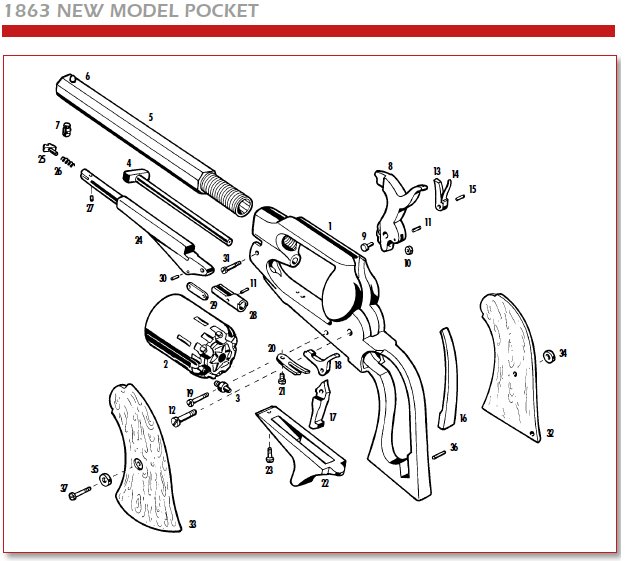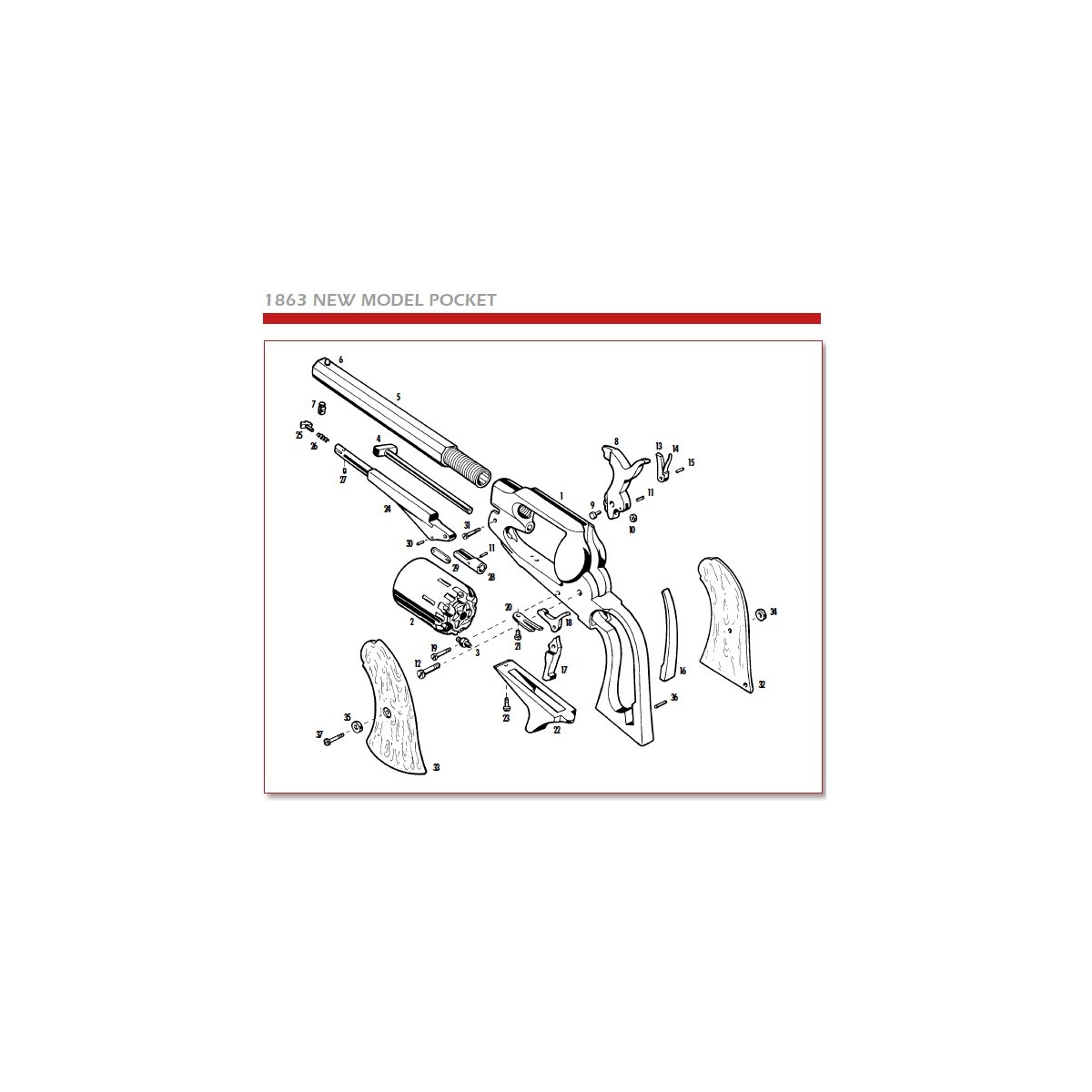 Rewolwer Pietta 1863 Remington Pocket Steel kal. 31, produkowany przez E. Remington and Sons. Jako pierwszy na świecie posiadał tzw. zamknięty szkielet (bęben z nabojami był otoczony przez jednoczęściowy szkielet), dzięki temu był bardziej niezawodny niż użytkowany równocześnie w tamtych czasach rewolwer typu Colt. Kolejną wielką zaletą (też jedną z głównych różnic) była możliwość wyjęcia w ciągu dosłownie kilkunastu sekund całego bębna i założenie nowego (wcześniej już załadowanego).