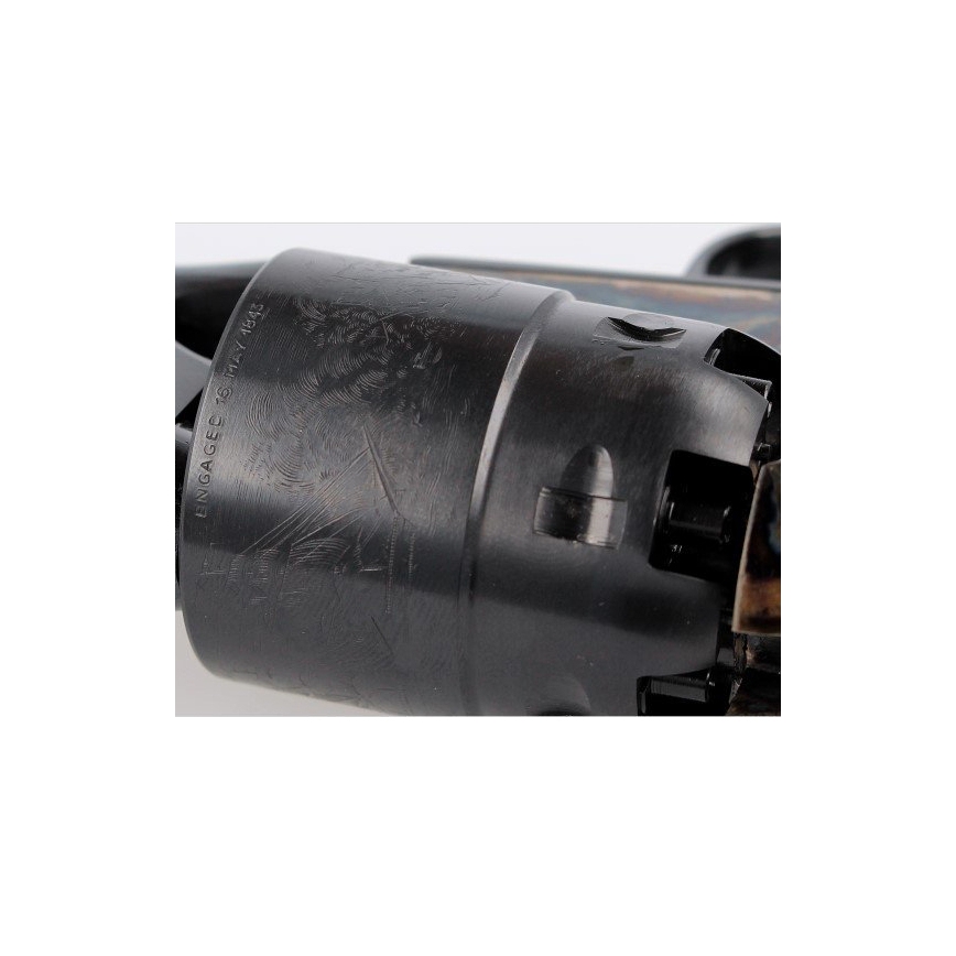 - Bęben - stalowy, 6-cio komorowy, oksydowany na kolor czarny. Kanelowany do połowy (1/2 fluted / wklęsły), lżejszy od pełnego bębenka. Na cylindrze wygrawerowana scena bitwy morskiej.