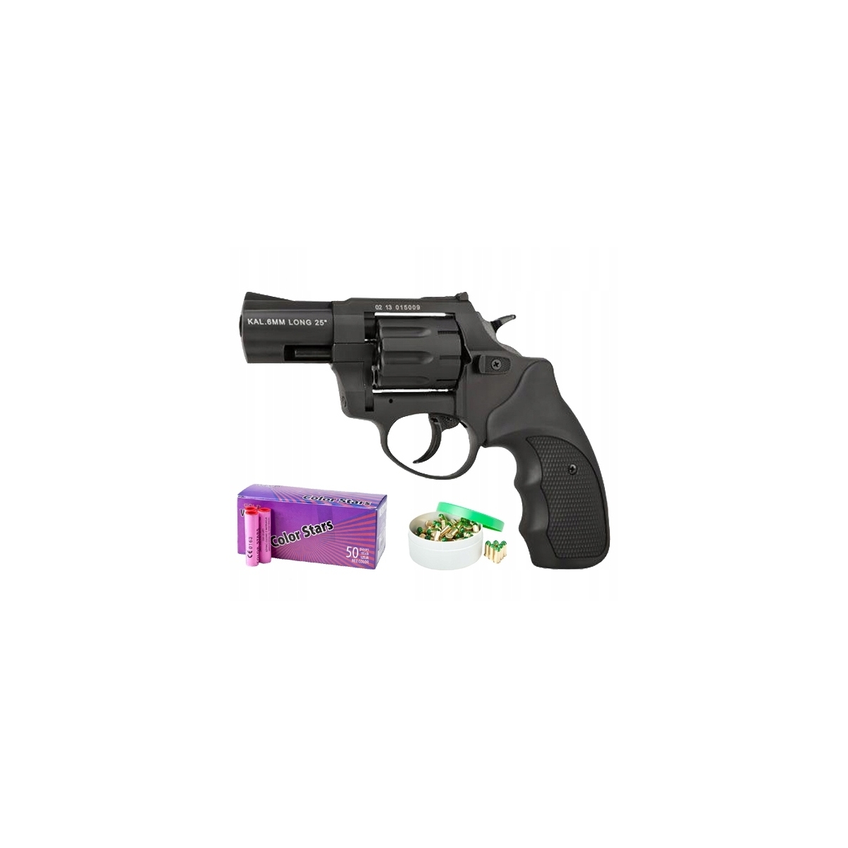 Rewolwer hukowy 6mm ZORAKI K-6L Long+ amunicja green 100szt + race kolorowe 50szt