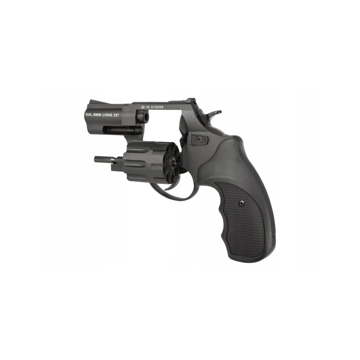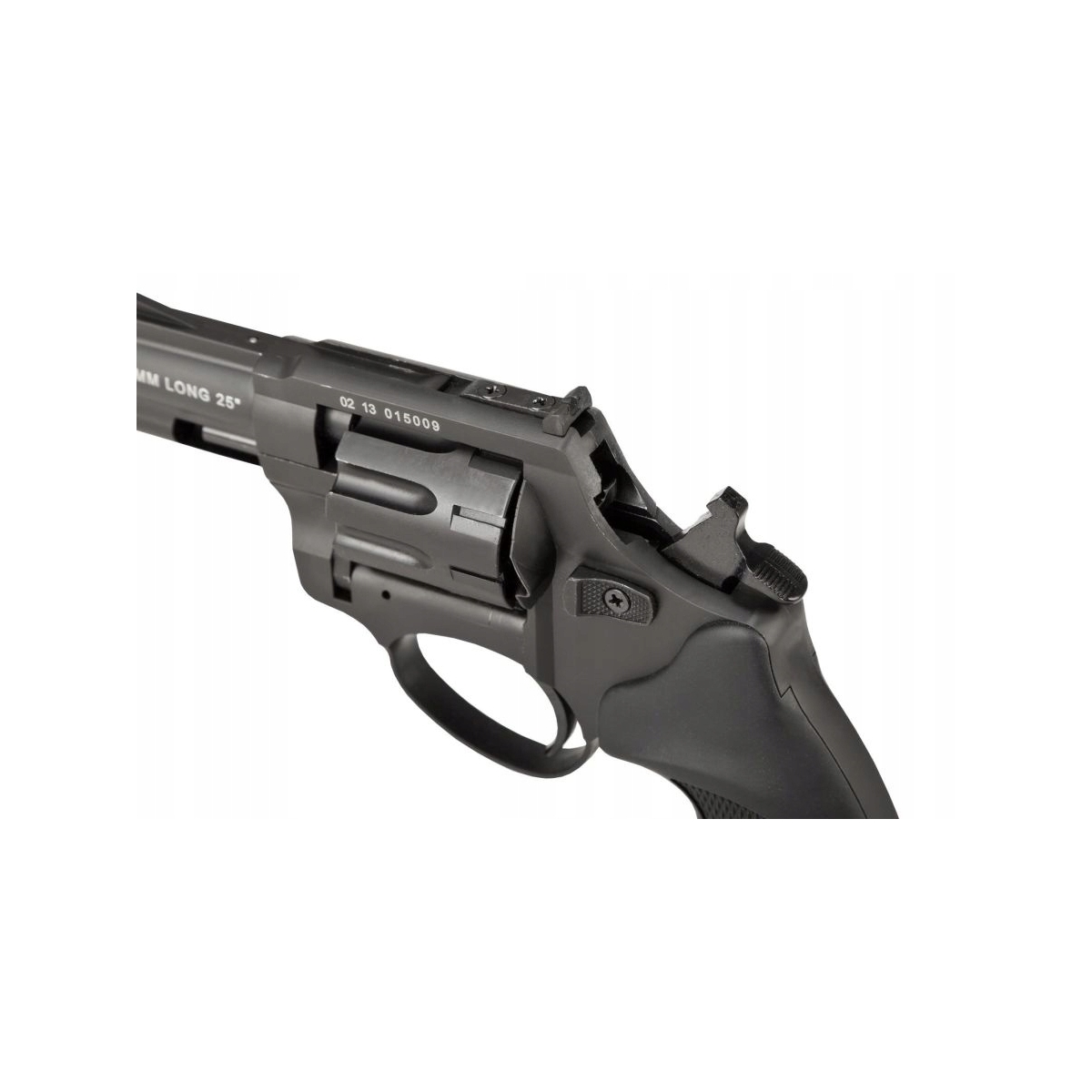 - Rewolwer został wyposażony w wyrzutnik łusek (ejector).