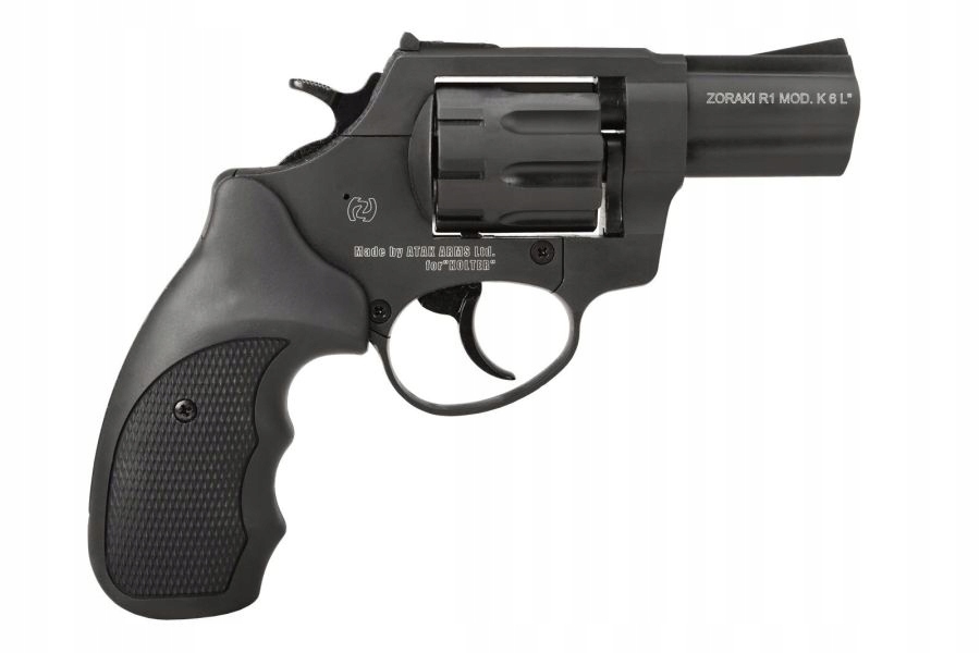 Rewolwer hukowy 6mm ZORAKI K-6L - to model słynący z niezawodności na amunicję hukową Green 6mm (5,6x16mm). Wykonany został w całości z wysokiej jakości metalu, natomiast okładziny rękojeści z tworzywa sztucznego. Bębenek mieści w sobie 9 sztuk nabojów. Rewolwer oddaje strzały w dwóch trybach: single action oraz double action. Można więc oddawać strzały naciskając od razu spust lub wcześniej odciągając kurek. Do usunięcia łusek służy wyrzutnik łusek (ejector). Rewolwer posiada przyrządy celownicze muszkę i szczerbinkę. W komplecie dołączona została nasadka do rac, co sprawia, że rewolwer może służyć nie tylko jako straszak przeciwko napastnikom czy zwierzętom, ale również może uświetnić wydarzenia okolicznościowe.