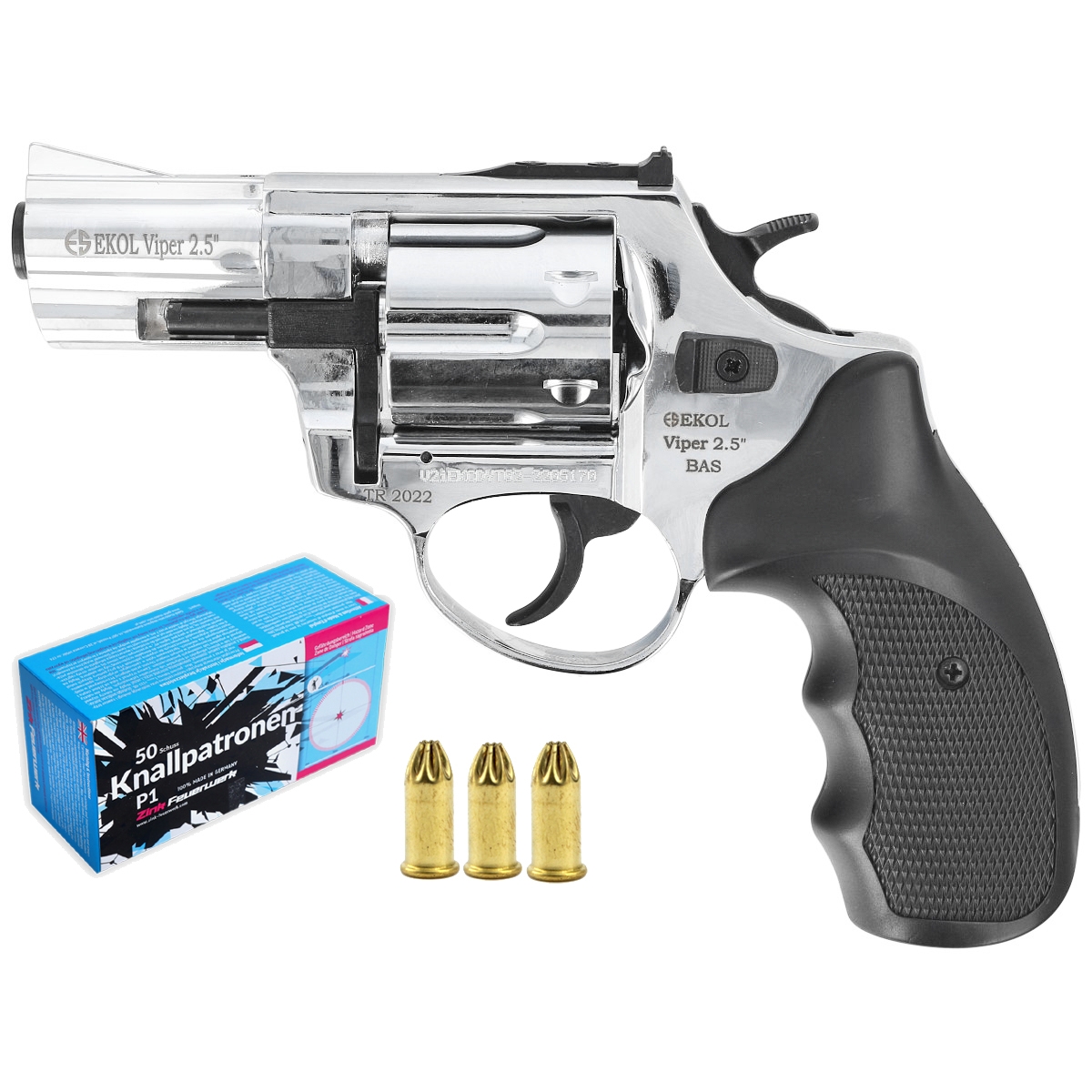 Zestaw rewolwer hukowy Ekol Viper 2,5" Shiny Chrome + amunicja hukowa long 100szt + race hukowe 50szt.