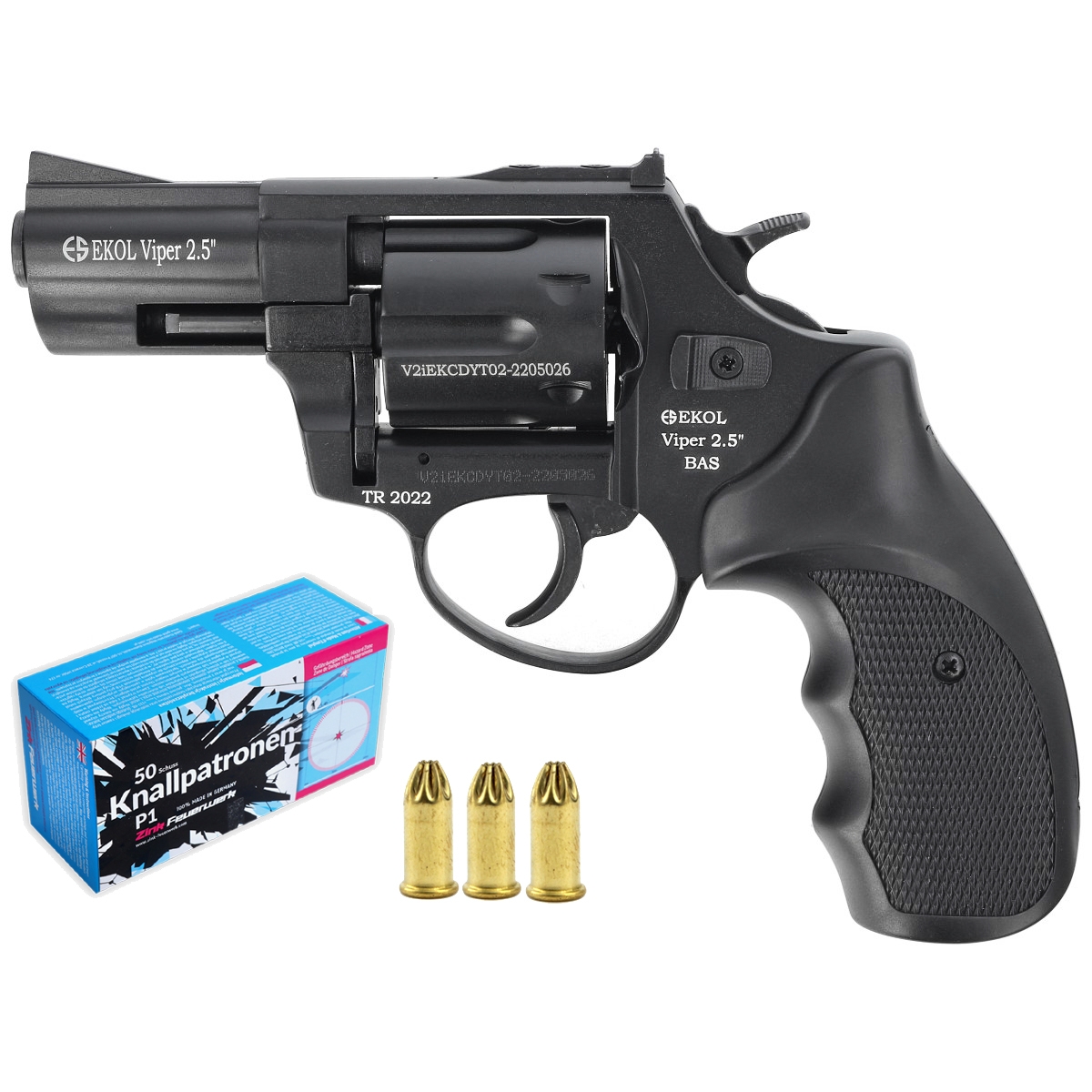 Rewolwer hukowy BAS Ekol Viper 2.5 MATTE BLACK + amunicja long 100szt. + race hukowe 50szt. komplet