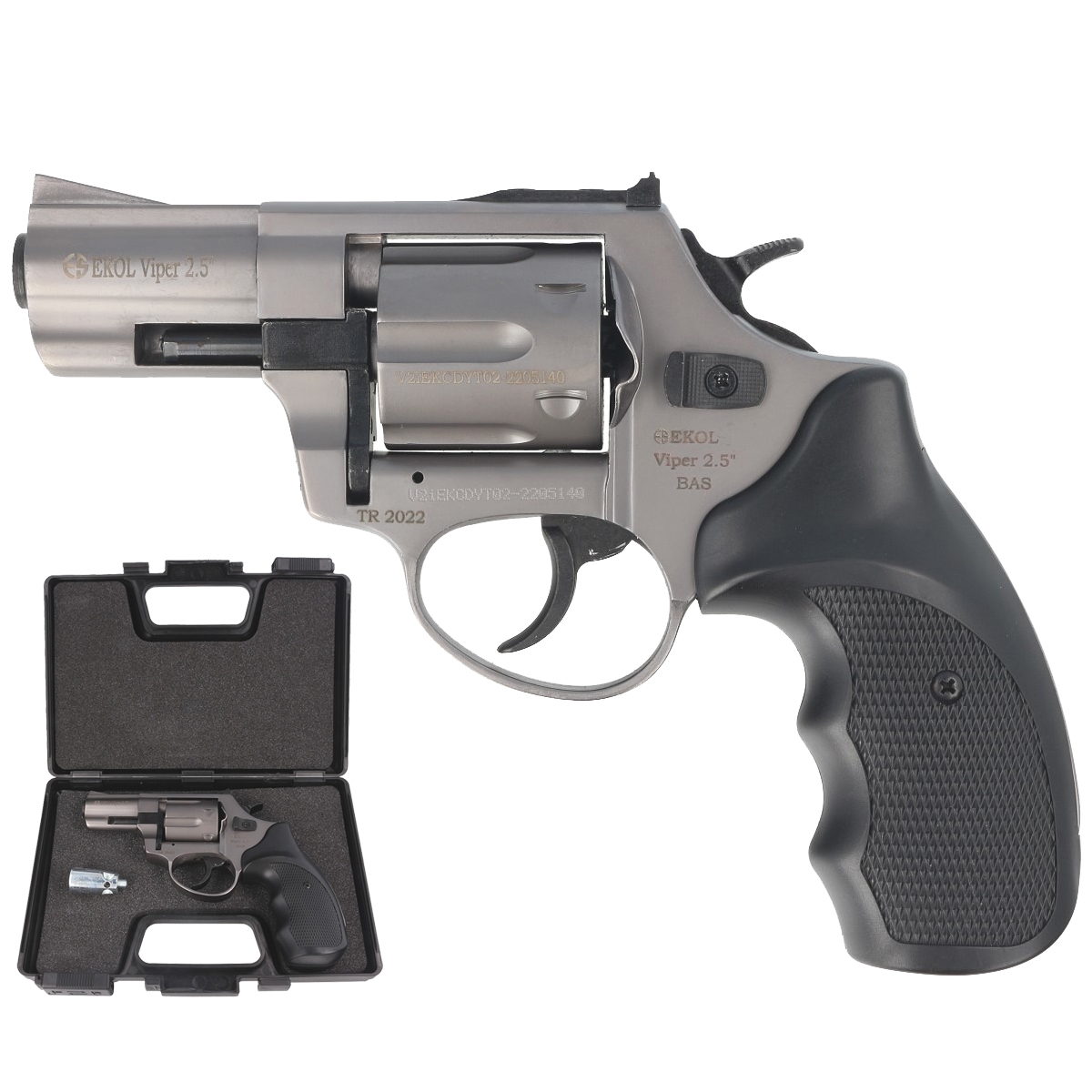 Rewolwer sygnałowo- alarmowy Ekol BAS Viper 2.5" GRAFIT na amunicję hukową , bocznego zapłonu typu long dostępny bez zezwolenia. Bardzo skuteczny w samoobronie, odstraszający potencjalnych napastników. Znajdująca się w zestawie nasadka do wystrzeliwania rac doskonała podczas zabaw sylwestrowych może być również stosowana w ratownictwie podczas wzywaniu pomocy.