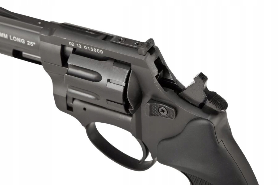 - Rewolwer został wyposażony w wyrzutnik łusek (ejector).
