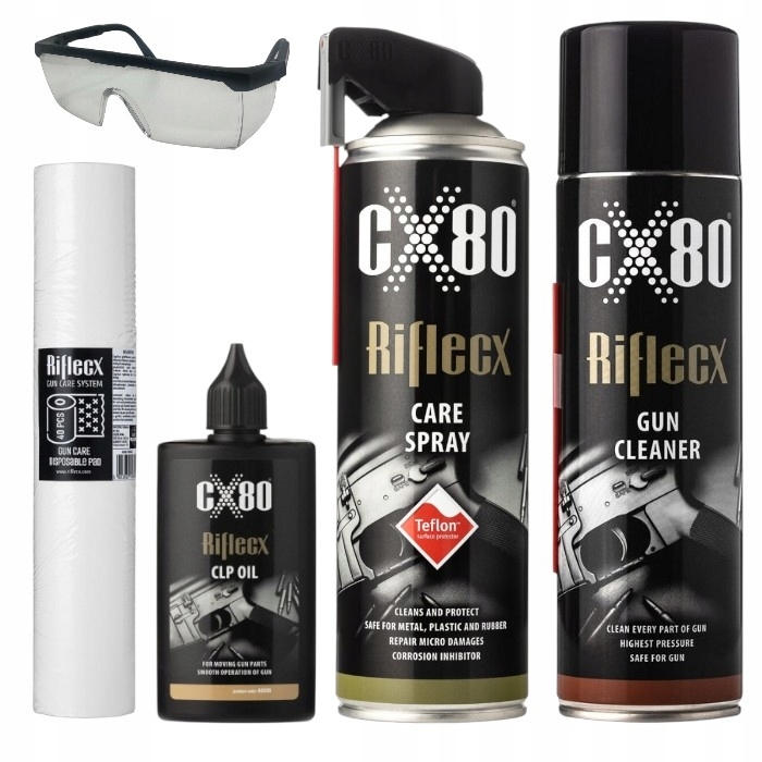 Zestaw produktów Riflecx do czyszczenia i konserwacji broni