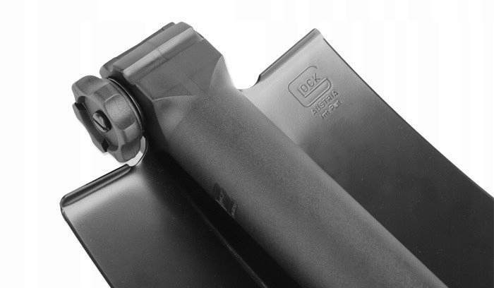 Saperka Składana GLOCK 1295 - to wytrzymałe narzędzie wielofunkcyjne o konstrukcji składanej, które może być używane do różnych zadań terenowych, takich jak kopanie rowów, wykopywanie dołków, czy przemieszczanie ziemi. Saperka może być blokowana w trzech pozycjach, dzięki temu można ją łatwo przekształcić w szuflę lub motykę. W rękojeści znajduje się utwardzana piła, która w razie potrzeby może być szybko i łatwo zamontowana. Rękojeść została wykonana z tego samego polimeru co szkieletu pistoletów Glock, co gwarantuje ekstremalną wytrzymałość przy niewielkiej wadze.