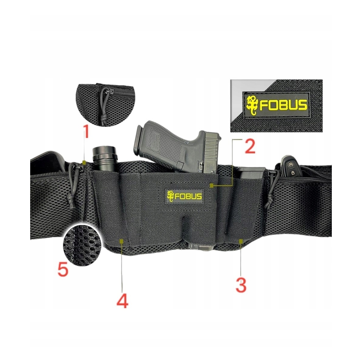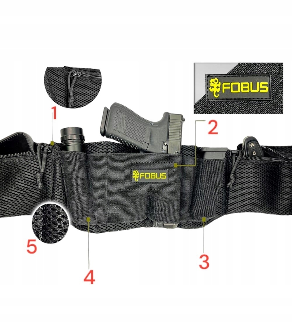 Profesjonalny pas taktyczny Fobus do skrytego noszenia broni, potocznie zwany pasem FBI lub SKYMARSHALL, przeznaczony jest dla osób potrzebujących przenosić broń i akcesoria w ukryciu. Pas nadaje się do przenoszenia broni wielkości Walther P99, Glock 17 (również Gen.6), Glock 19 (również Gen.6), Beretta APX.