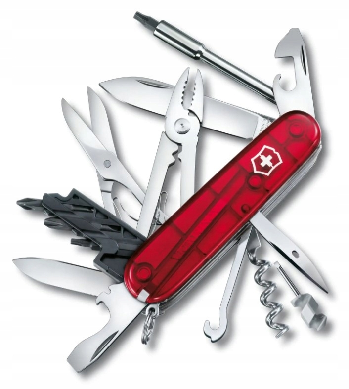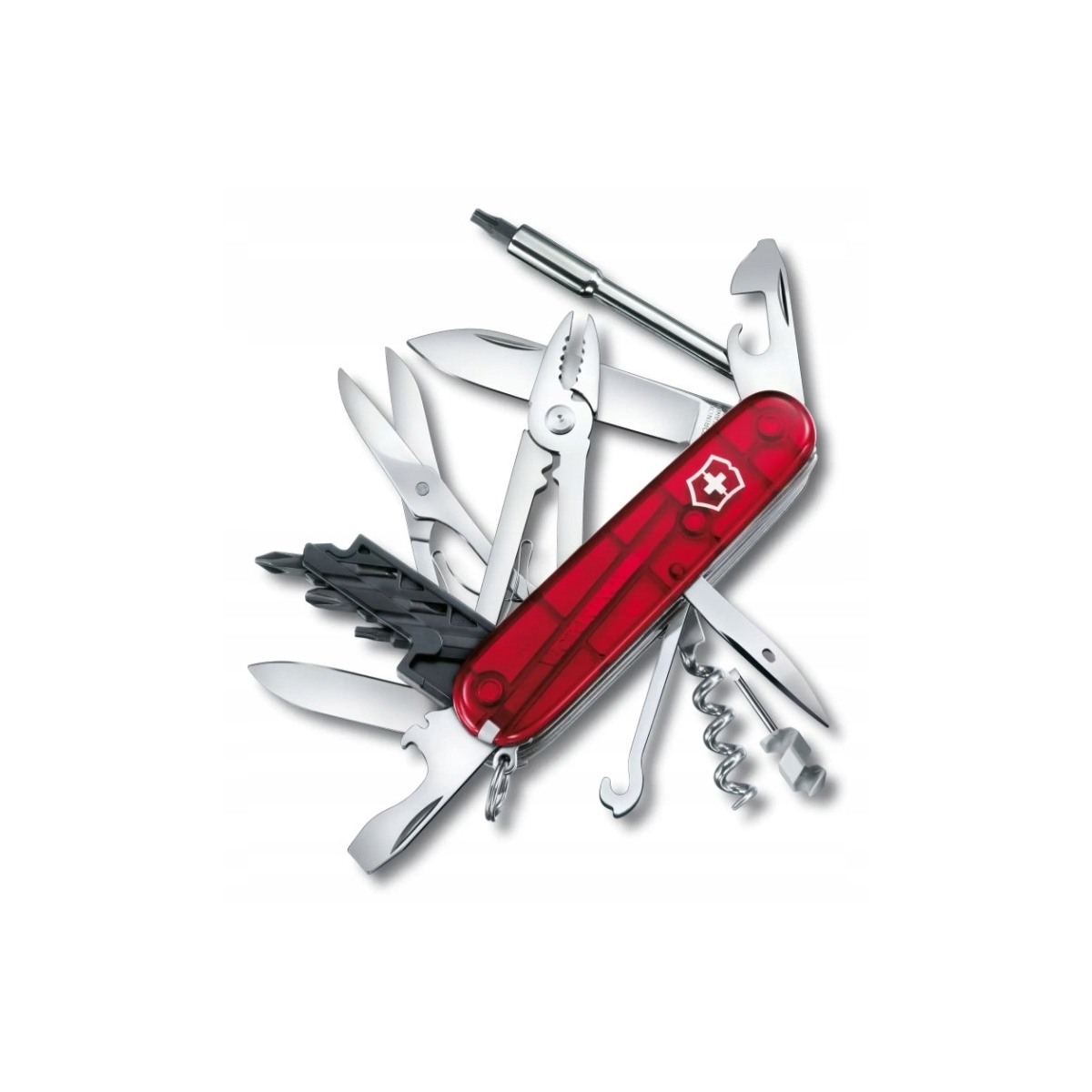 Scyzoryk VICTORINOX CYBERTOOL 34 1.7725.T Czerwony - to scyzoryk znanej i renomowanej firmy Victorinox z rozkładanym etui na bity. Do tradycyjnych funkcji dodane zostały nowe narzędzia, m.in. zestaw kluczy odpowiednich do naprawy sprzętów elektronicznych. Posiada 32 różne funkcje zawarte w jednym średniej wielkości narzędziu.