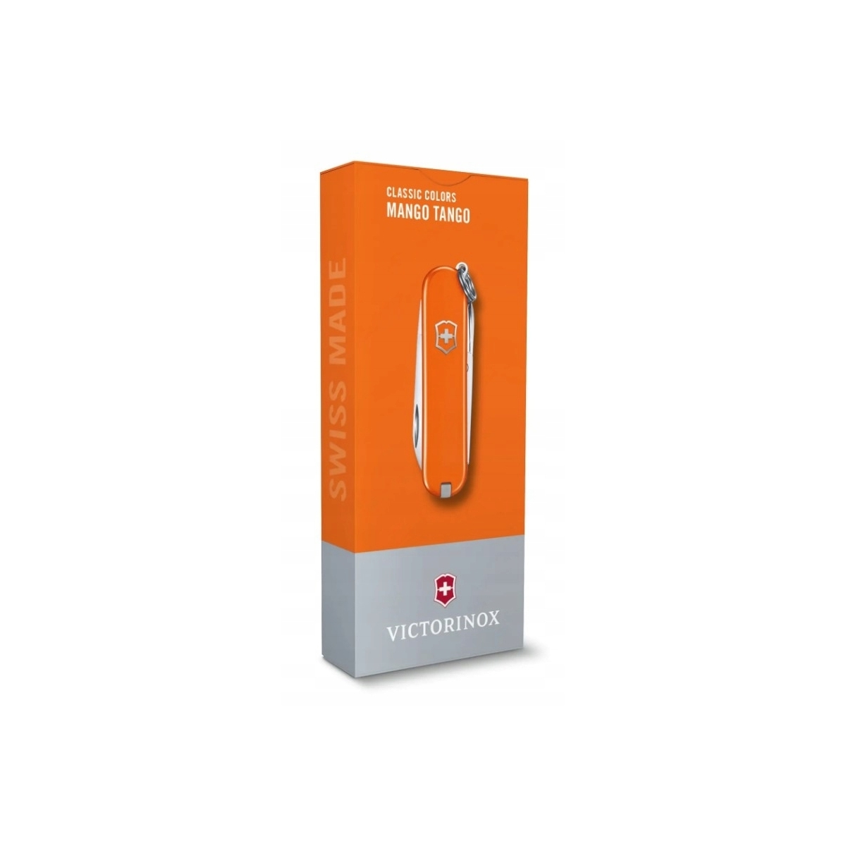 Scyzoryk Victorinox Classic SD 58 mm Mango Tango - to scyzoryk znanej i renomowanej firmy Victorinox. Ostrza scyzoryka zrobione są ze stali nierdzewnej. Scyzoryk wyposażony w 7 niezbędnych funkcji.