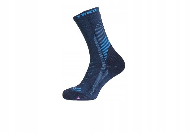 Skarpety Teko Infinity storm - wielofunkcyjne, sportowe skarpety o wysokości do łydki, z lekką amortyzacją na całej długości, wykonane z materiału M3RINO SIN3RGI. Posiadają najnowszą technologię Teco – Ripple System, która przyspiesza suszenie podczas ruchu.