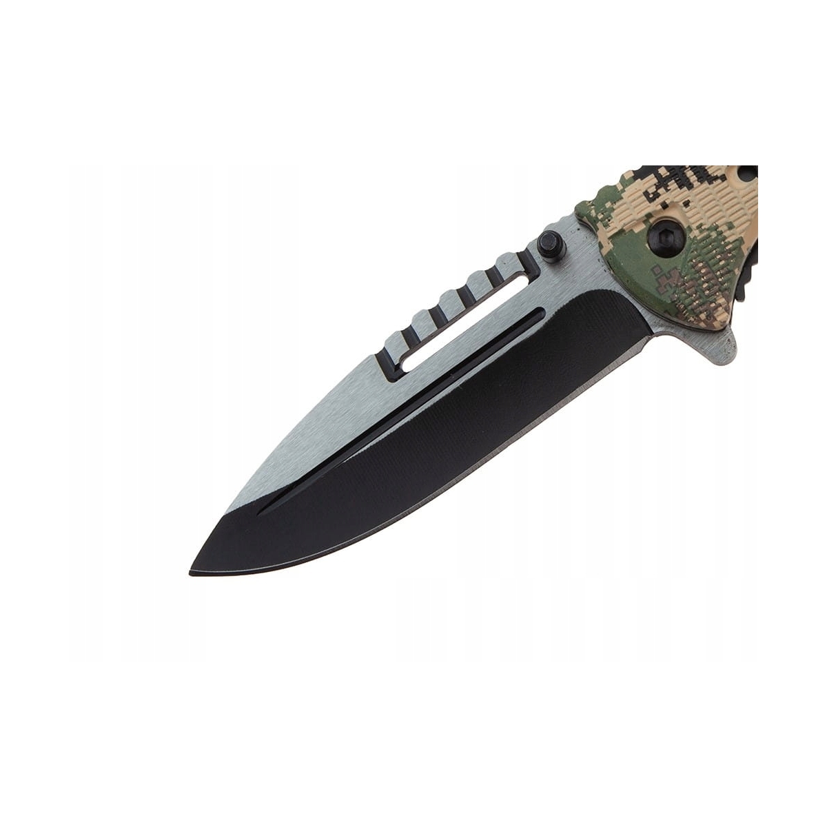 Nóż składany w wojskowym klimacie N-547A - model, który przydaje się w każdej sytuacji. Głownia o profilu drop point została wykonana z wysokogatunkowej stali nierdzewnej typu 420. Materiał ten jest wyjątkowo odporny na uszkodzenia i wykazuje wysokie właściwości antykorozyjne.