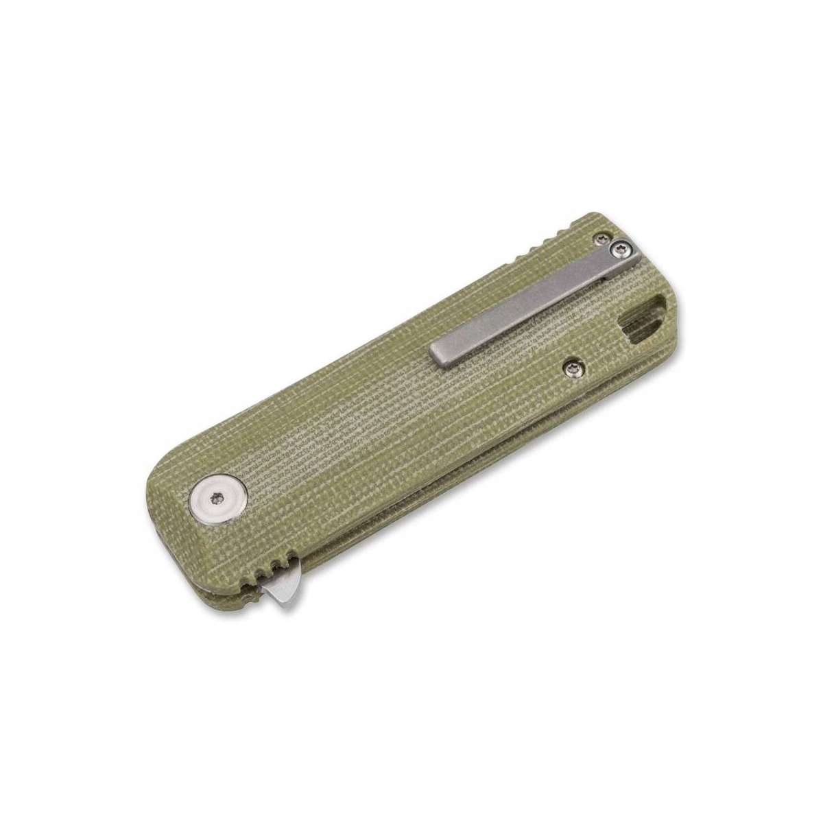 - Nóż wyposażony w sprężysty klips pozwalający na zaczepienie noża o krawędź kieszeni lub paska.