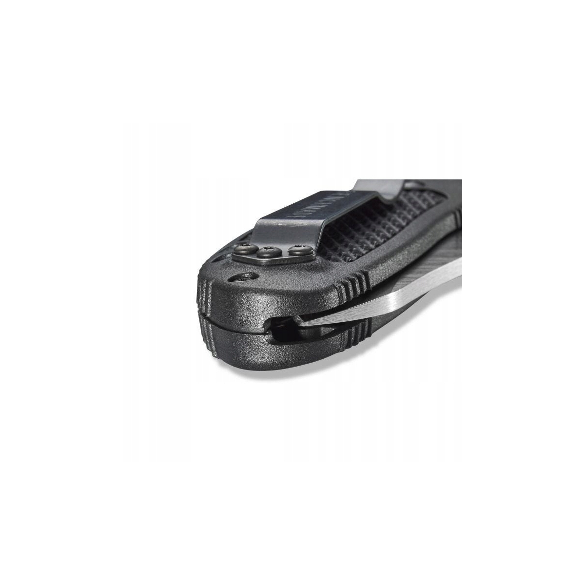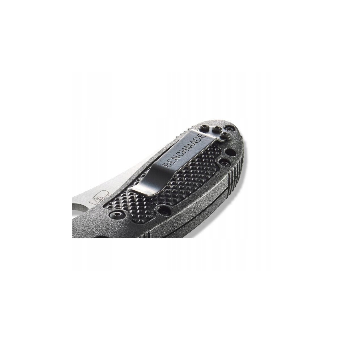 Grzbiet klingi został podniesiony i poddany rowkowaniu, co zapewnia stabilność precyzyjnego prowadzenia ostrza. Za bezpieczeństwo pracy odpowiada flagowy mechanizm Benchmade, dwustronna blokada Axis-lock, ceniona za ogromną wytrzymałość mechaniczną, odporność na zabrudzenie oraz wygodę obsługi.