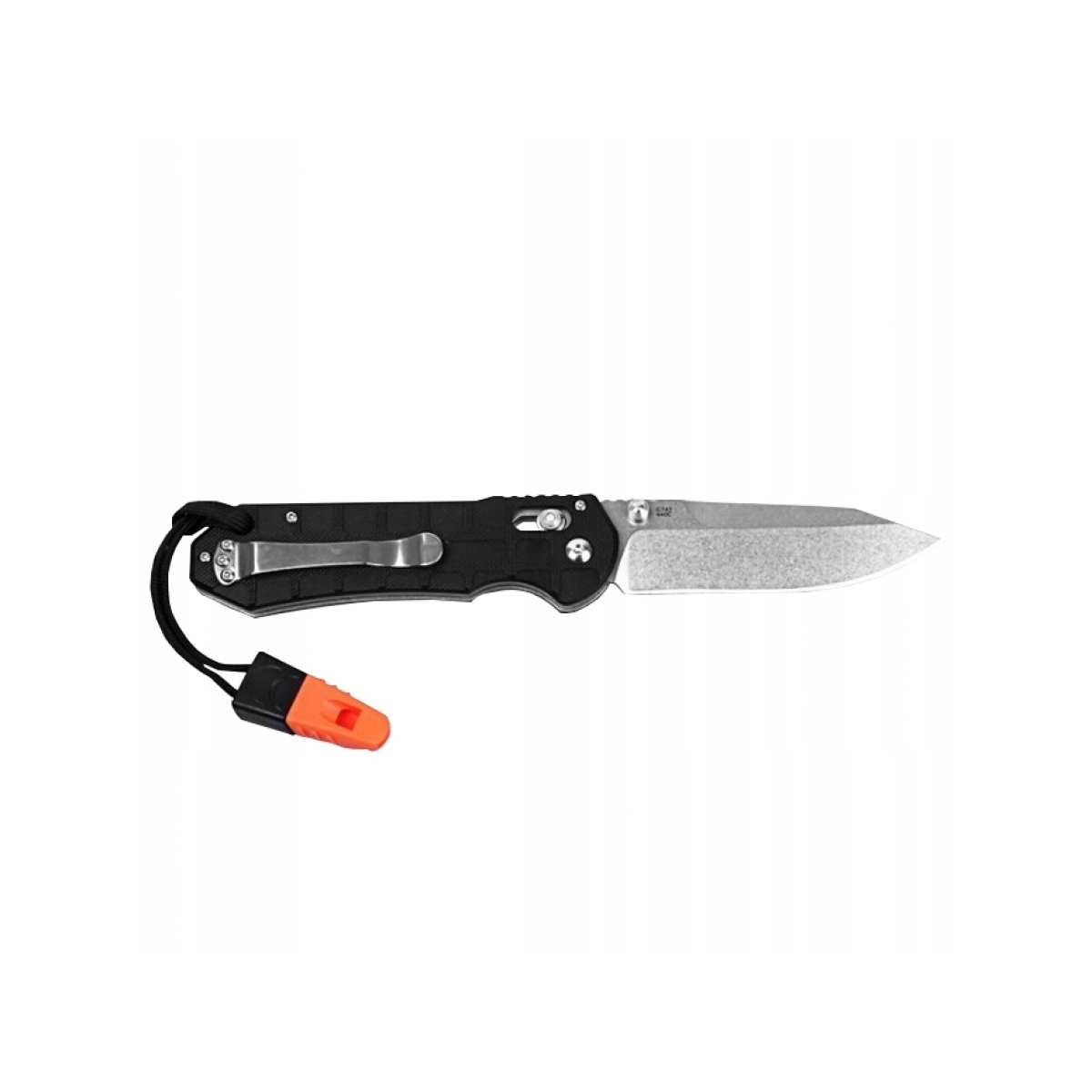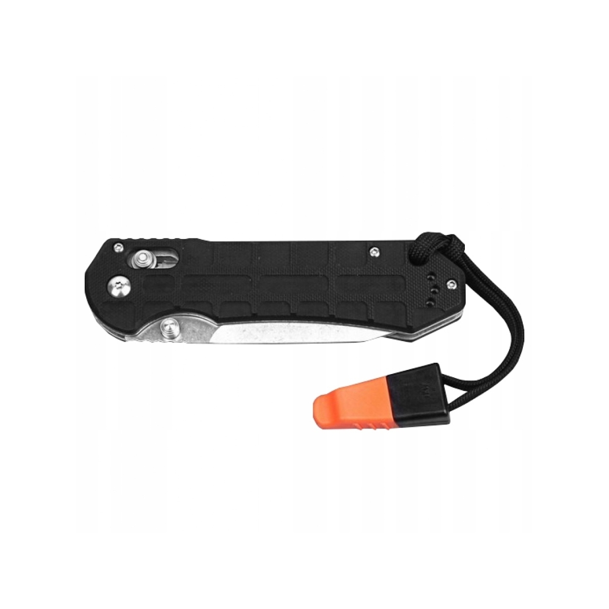 Outdoorowy charakter noża podkreśla smyczka z paracordu wzbogacona gwizdkiem sygnalizacyjnym o dużej głośności.
