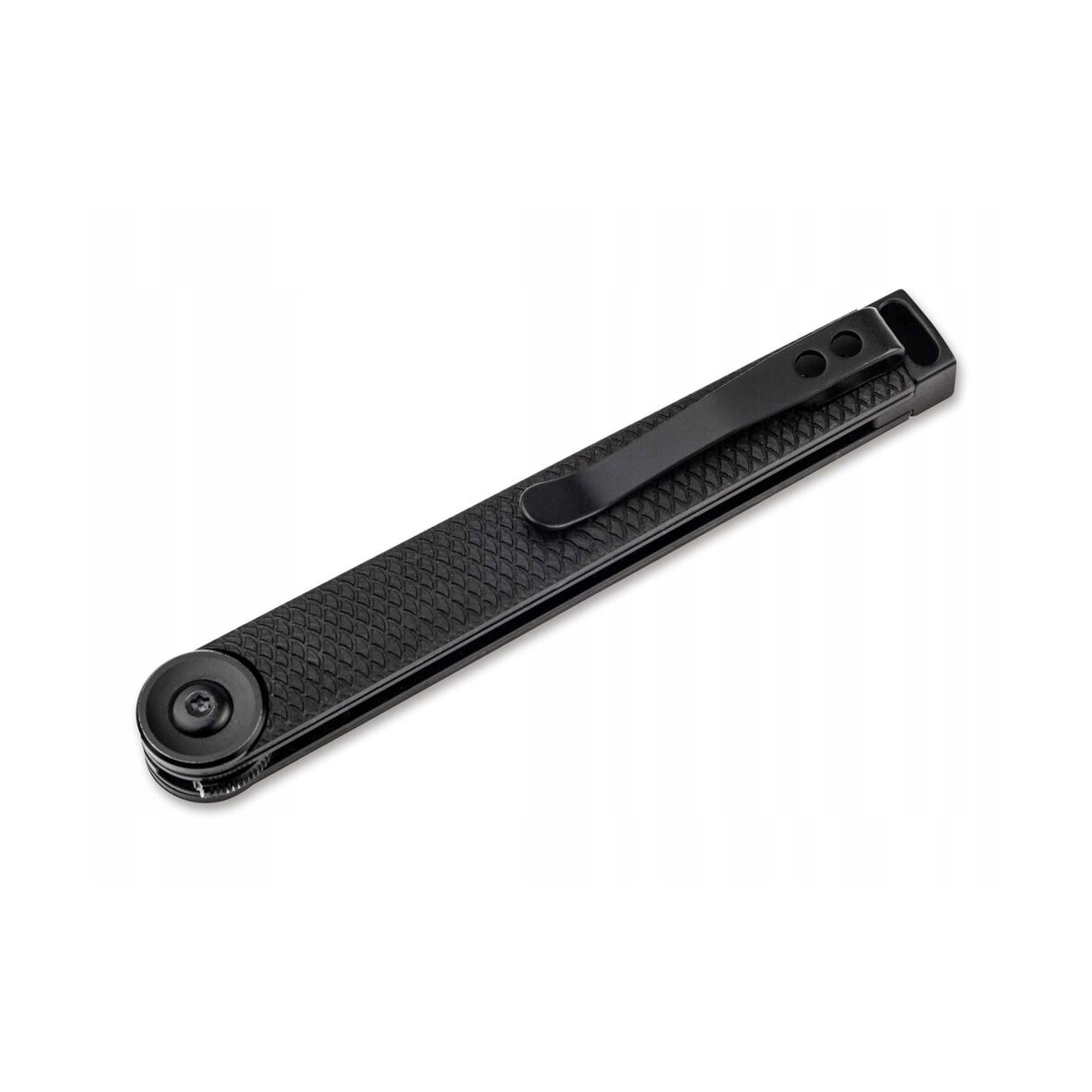 - Sprężysty stalowy klips umożliwia wygodne noszenie noża po zaczepieniu go do paska lub o krawędź kieszeni.