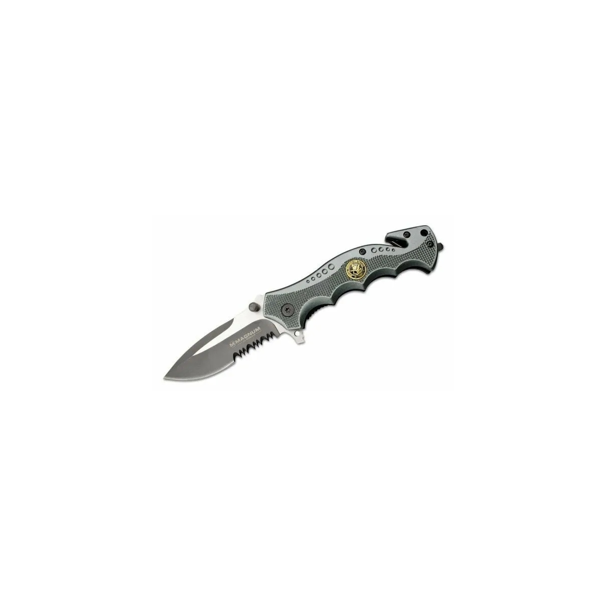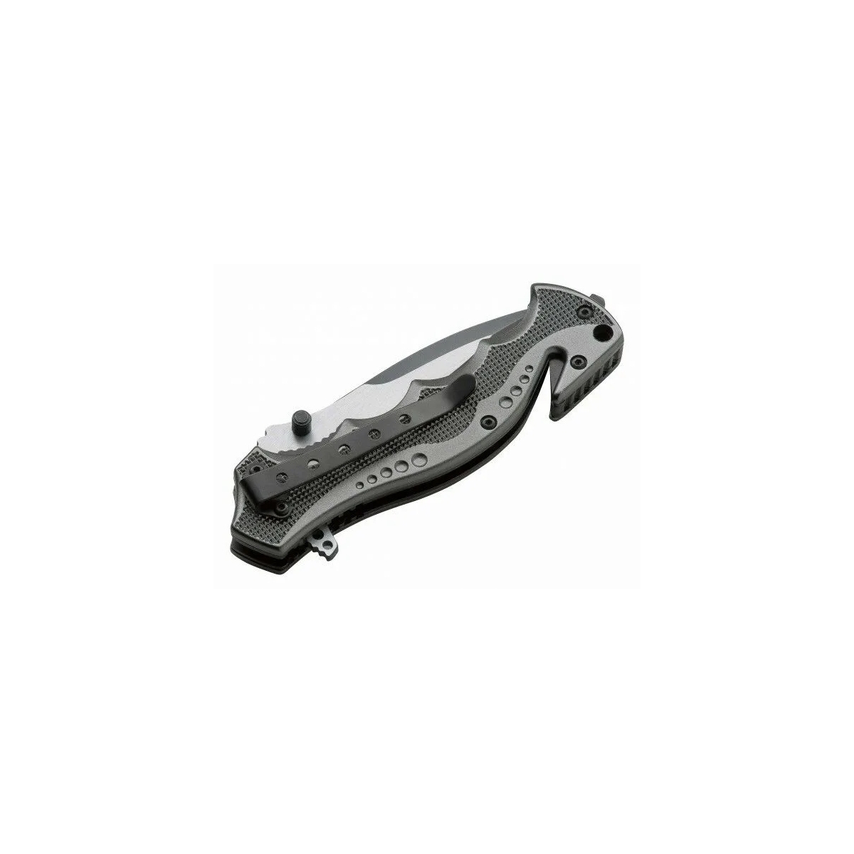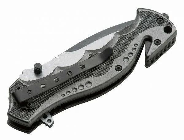 - Tłuczek do szkła, częściowo ząbkowana krawędź, przecinak do pasów i mechanizm otwierania wspomagany sprężyną świadczą o wysokim poziomie funkcjonalności noża.
