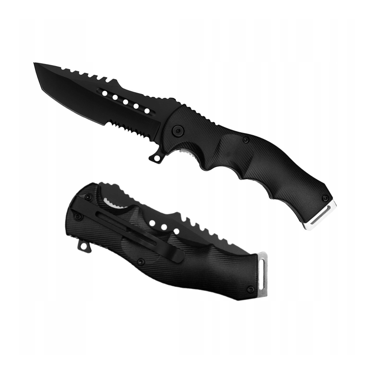 - Zmodyfikowane gładkie i ząbkowane ostrze o profilu american tanto.