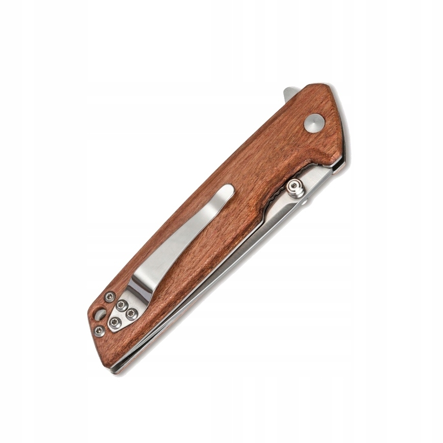 - Nóż płynnie otwiera się za pomocą wygodnego flipper'a oraz obustronnego kołka w klindze.