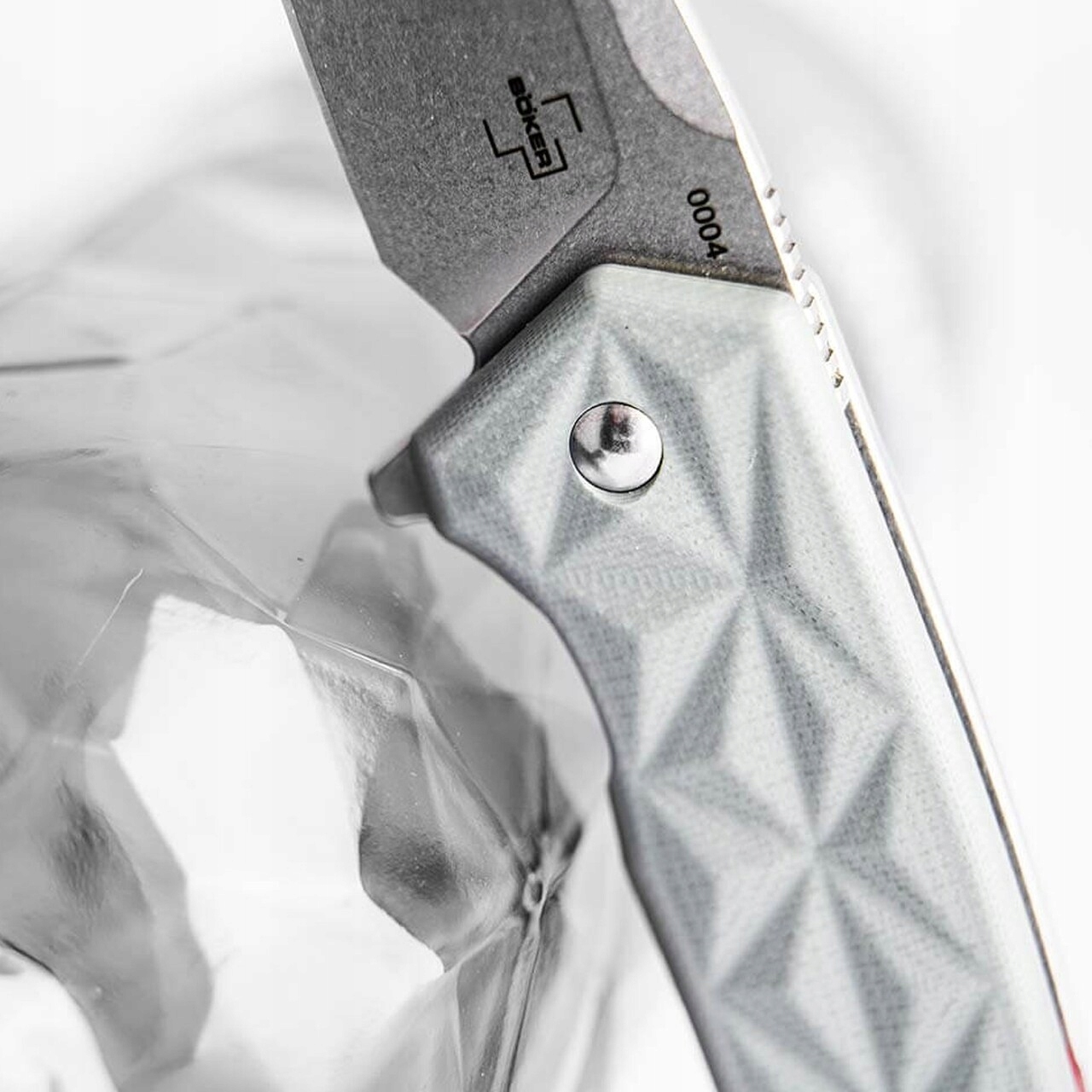 - Okładziny noża wykonano z szarego laminatu G10.