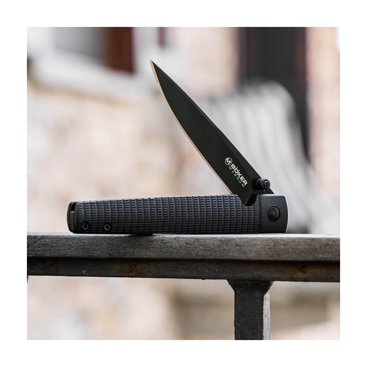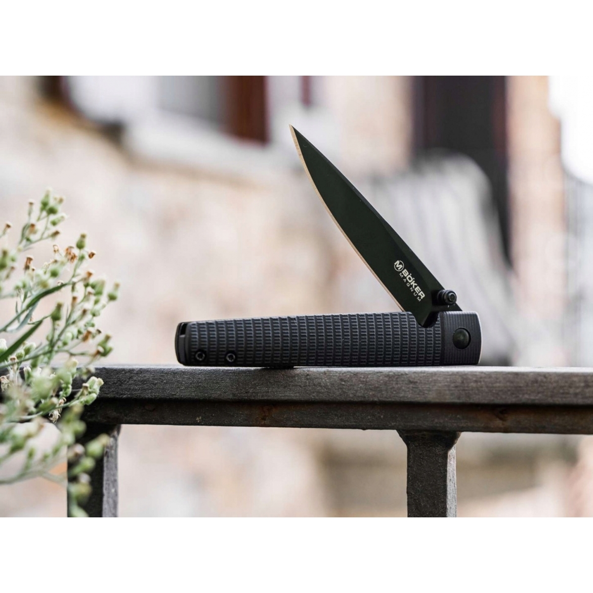 Nóż Boker Stereo nie za duży, bardzo poręczny i ... bardzo lekki (60g.) jak na swoje gabaryty, typowy "garniturowiec" nóż na co dzień, do każdego stroju i na każdą okazję, spokojnie "znika" i mieści się w stroju sportowym jak również wizytowym, ponadto stylistyka bardzo prosta (trzymany w dłoni nie wygląda jak nóż).
