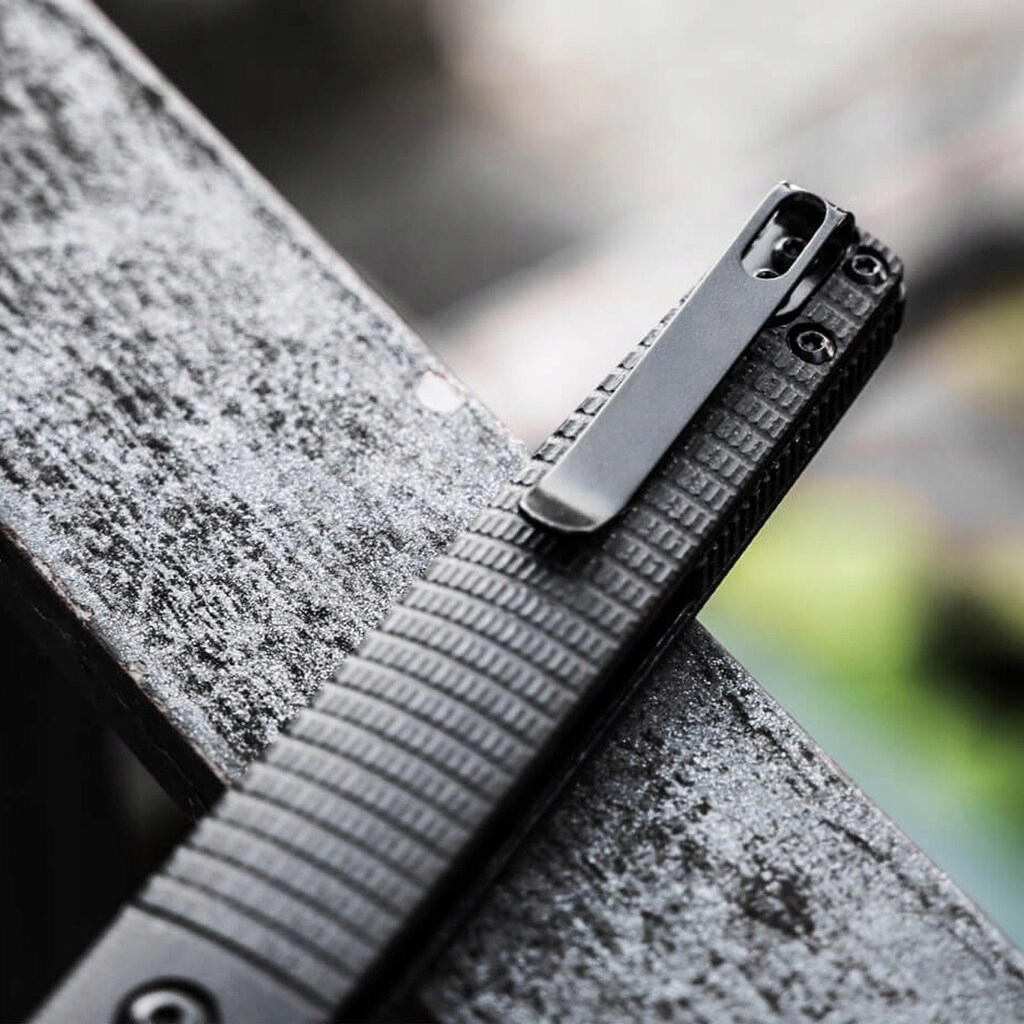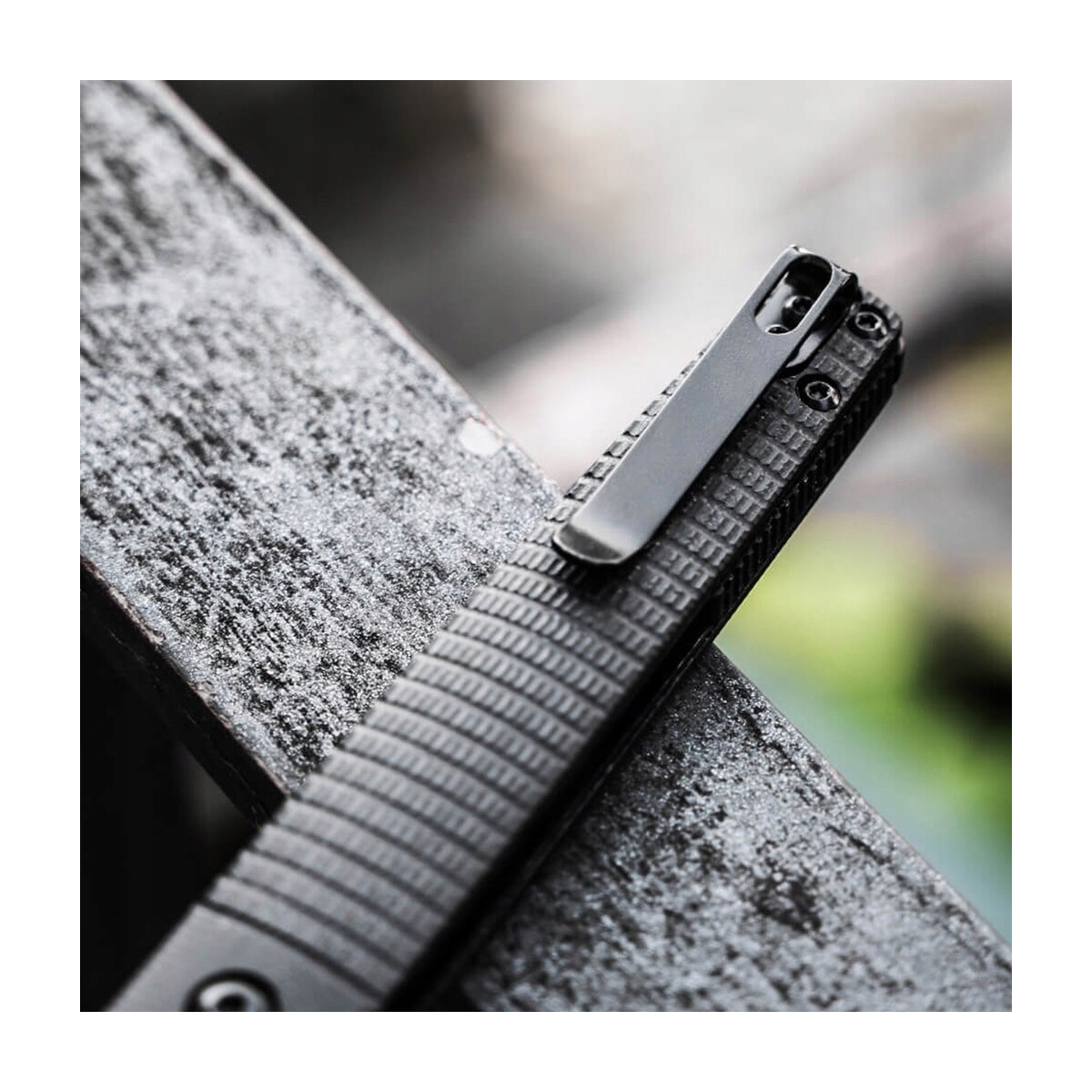 - Nóż został wyposażony w klips ułatwiający codzienne przenoszenie. Pozwala na przymocowanie noża do paska, krawędzi kieszeni, plecaka lub innych elementów oporządzenia.