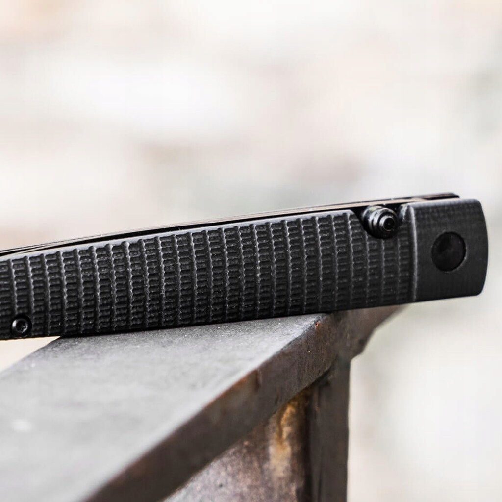 - Nóż posiada okładziny z laminatu G10, które zostały ergonomicznie wyprofilowane.