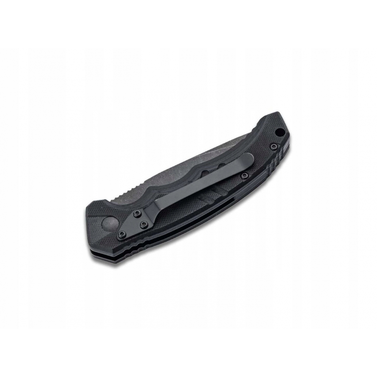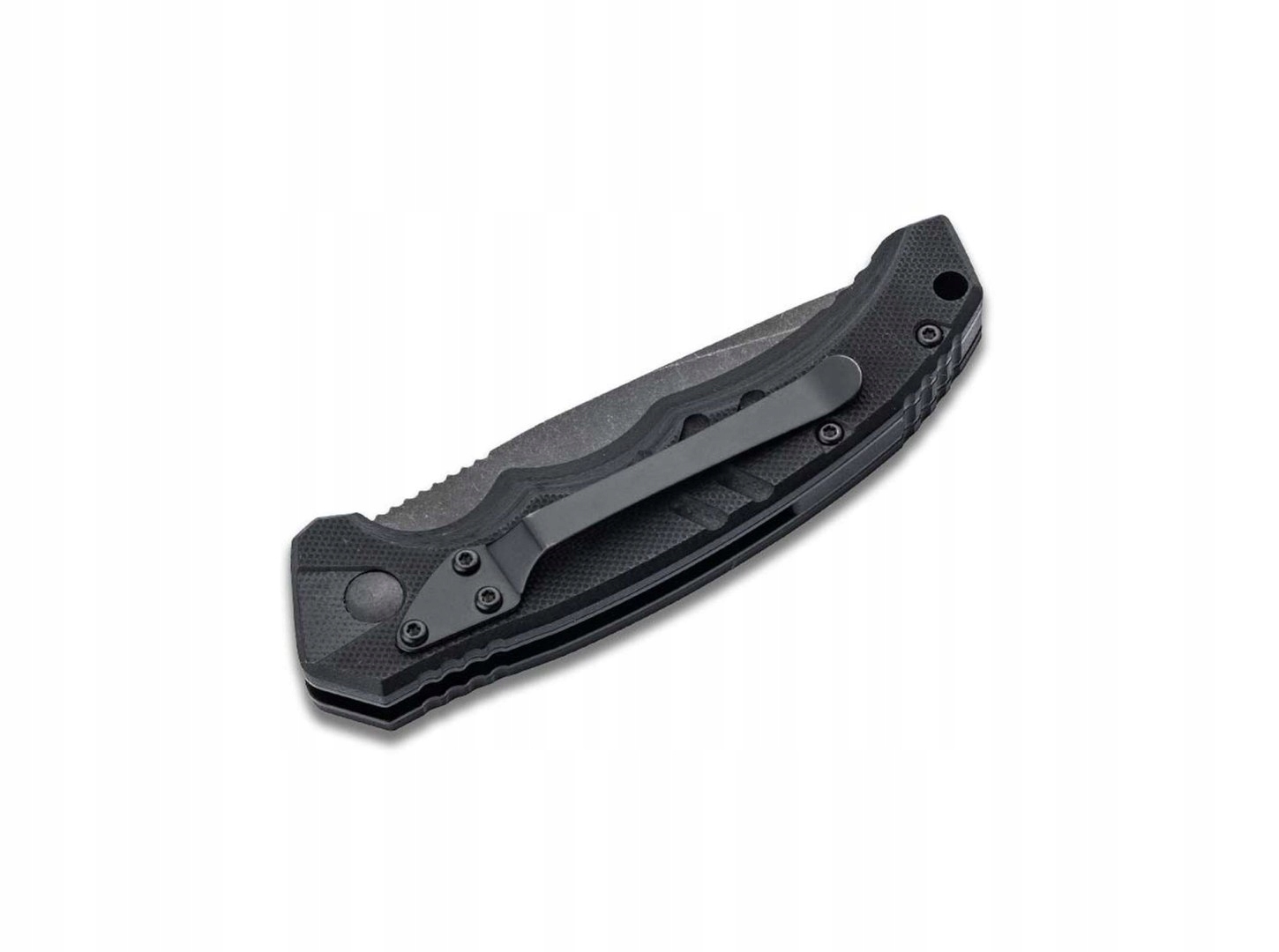 - Codzienne wygodne noszenie zapewnia sprężysty, stalowy klips, umożliwiający przymocowanie noża do paska lub do krawędzi kieszeni.