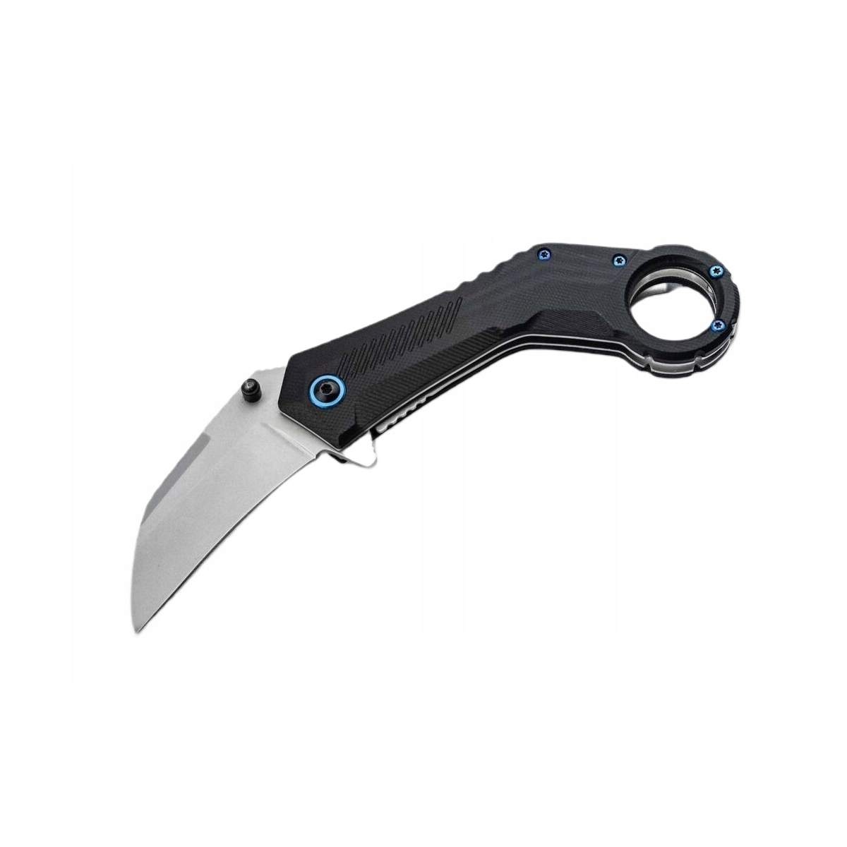 ✅ Pierścień wzdłuż śruby obrotowej oraz śruby uchwytu są anodowane na niebiesko, co nadaje nożowi nowoczesnych akcentów.